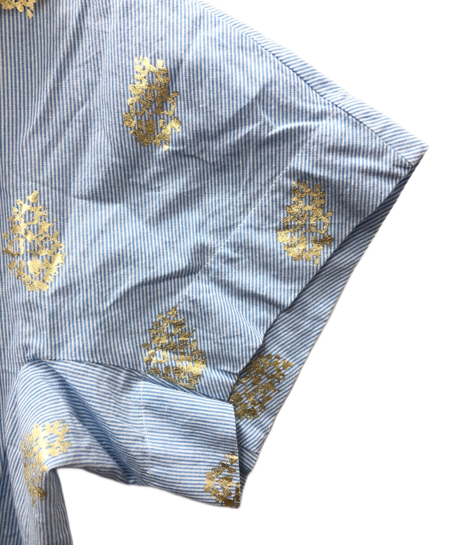 アイテム名 Cotton Poplin Stripe Foil Print Half Sleeve Tiered Dress
