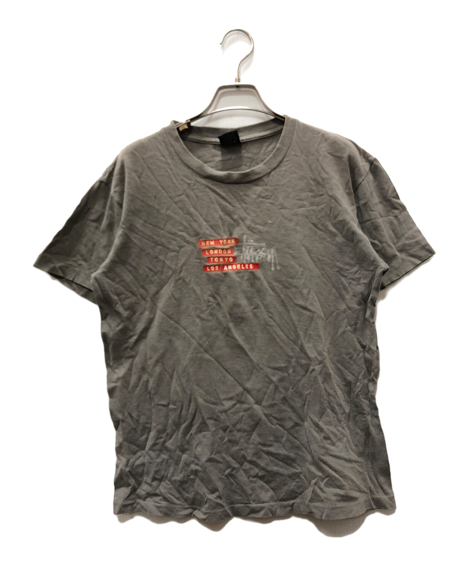 • stussy(ステューシー)stussy (ステューシー) プリントTシャツ ベージュ サイズ:Mの古着・服飾アイテム 各所汚れ有