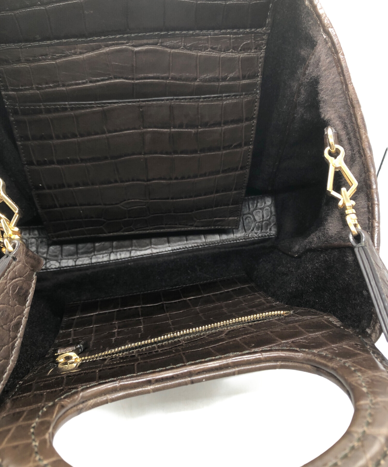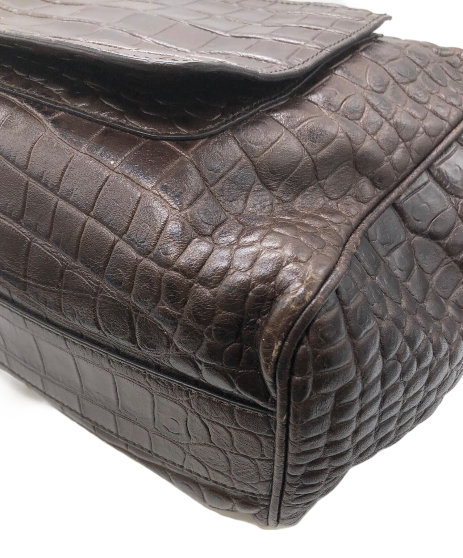 • MaxMara(マックスマーラ)MaxMara (マックスマーラ) クロコ型押しショルダーバッグ ブラウンの古着・服飾アイテム 各所スレ・キズ有