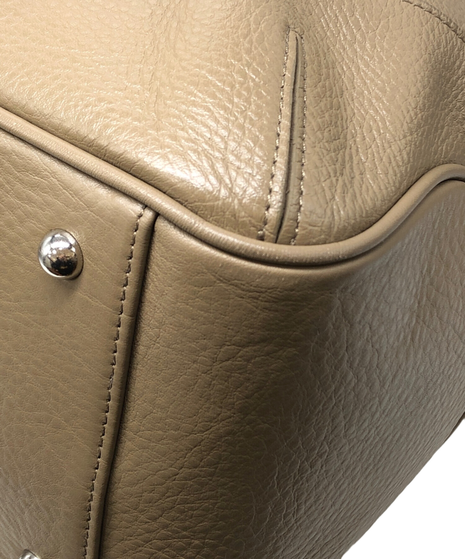 • PELLE MORBIDA(ペッレモルビダ)PELLE MORBIDA (ペッレモルビダ) フラップボストンバッグ(Mサイズ) トープ(ベージュ) サイズ:下記参照の古着・服飾アイテム フロントペン跡有