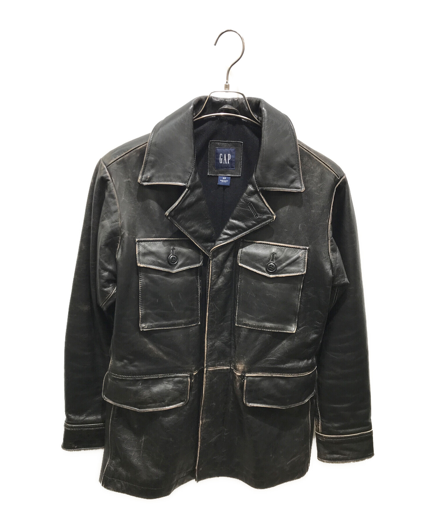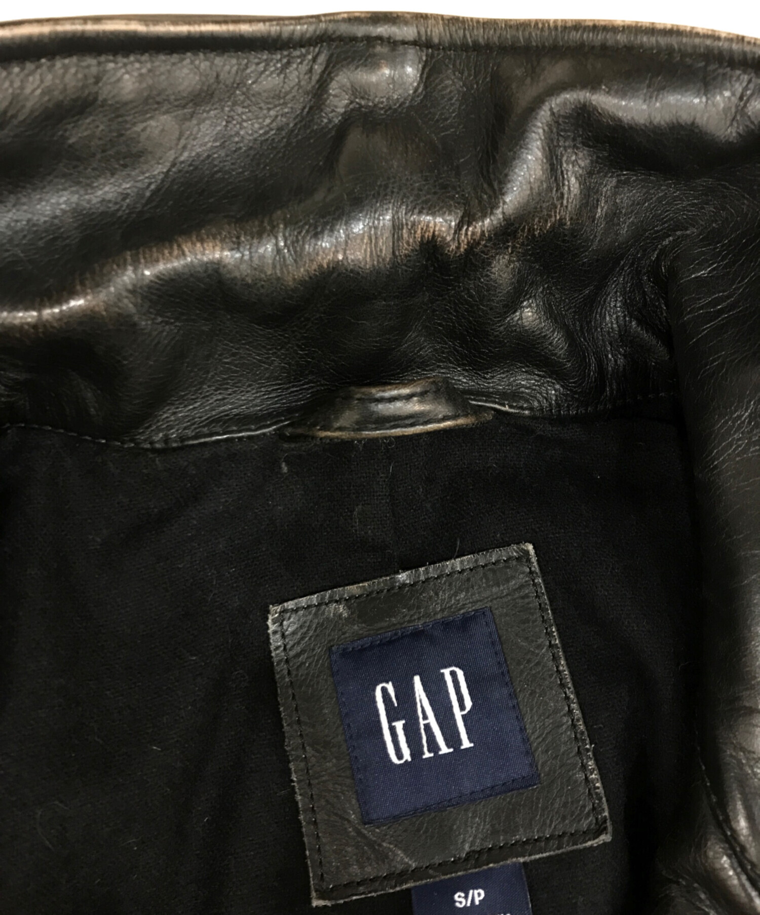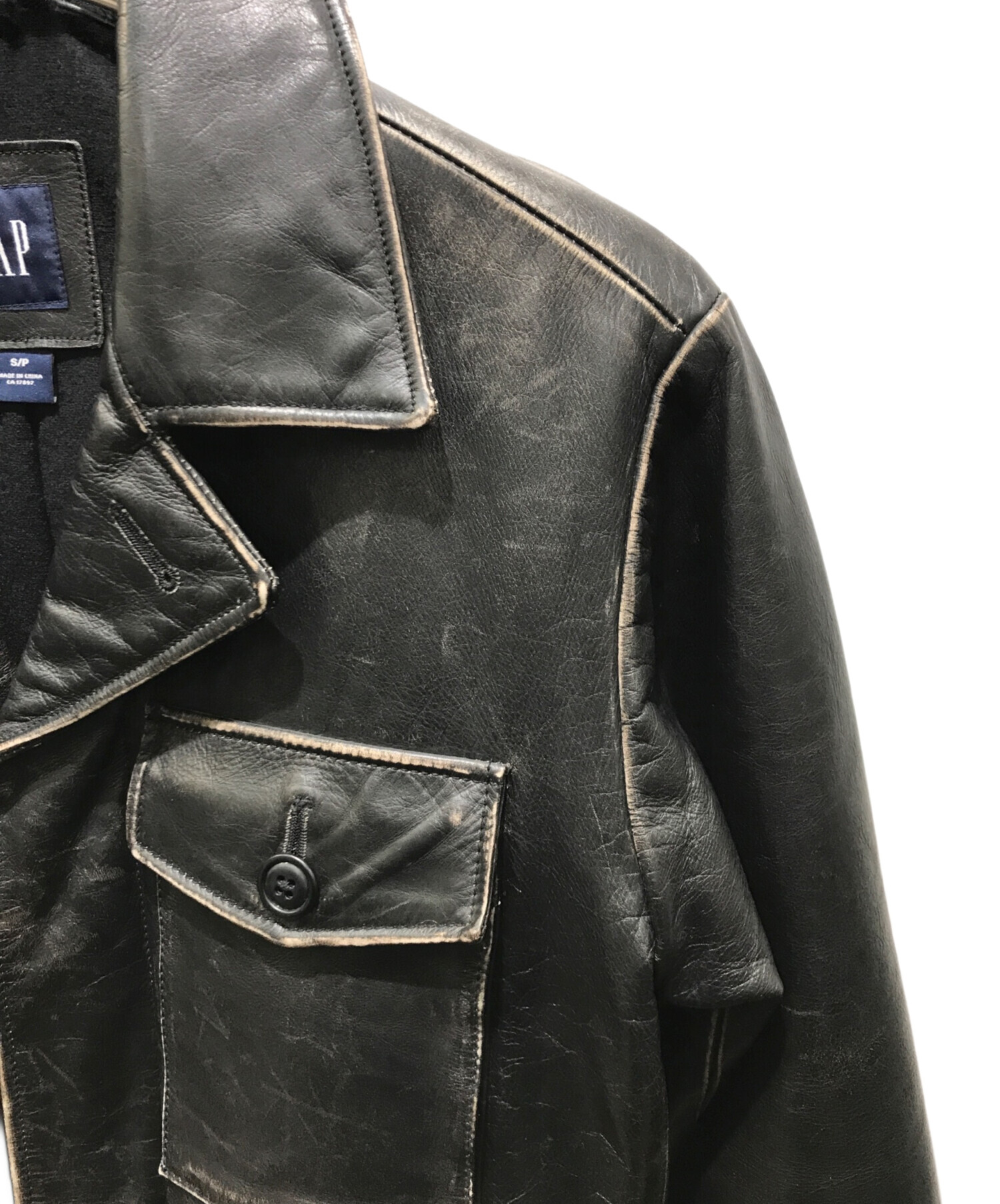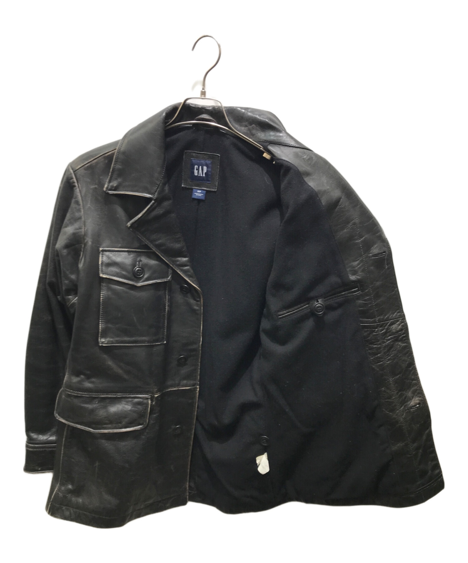 • GAP(ギャップ)GAP (ギャップ) レザーカーコート OLDGAP ブラック サイズ:Sの古着・服飾アイテム 擦れ