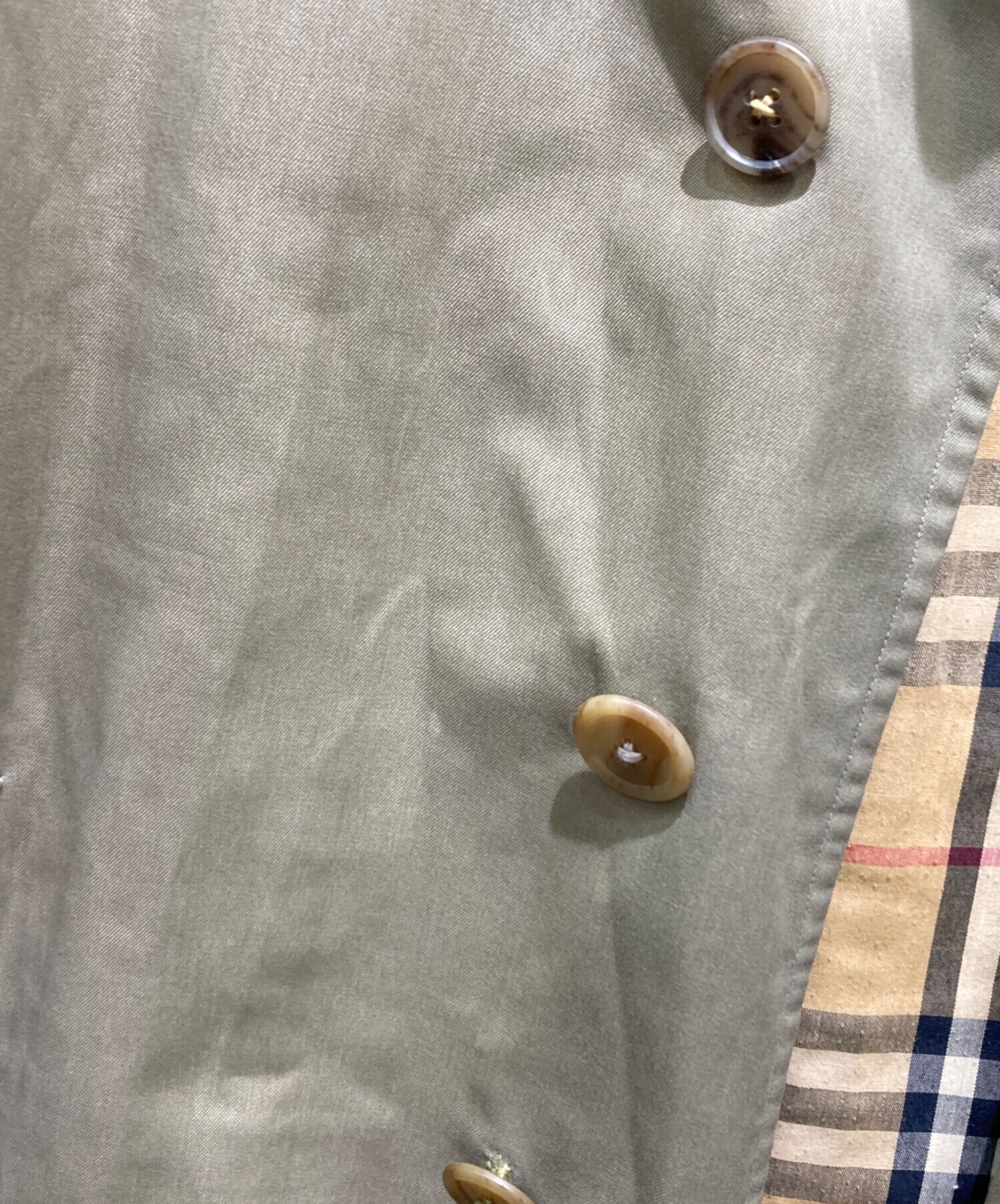 目立つシミや汚れ、におい等がある場合は商品画像や説明文にて極力表記させていただいておりますが、中古品という商品の特性上、全ての瑕疵や不備、洋服直し箇所を撮影・記載をすることは難しくなっております。また、ほとんどのアイテムは店頭と併売しておりますため、出品掲載時からコンディションが変動している場合もございます。あらかじめご了承くださいませ。