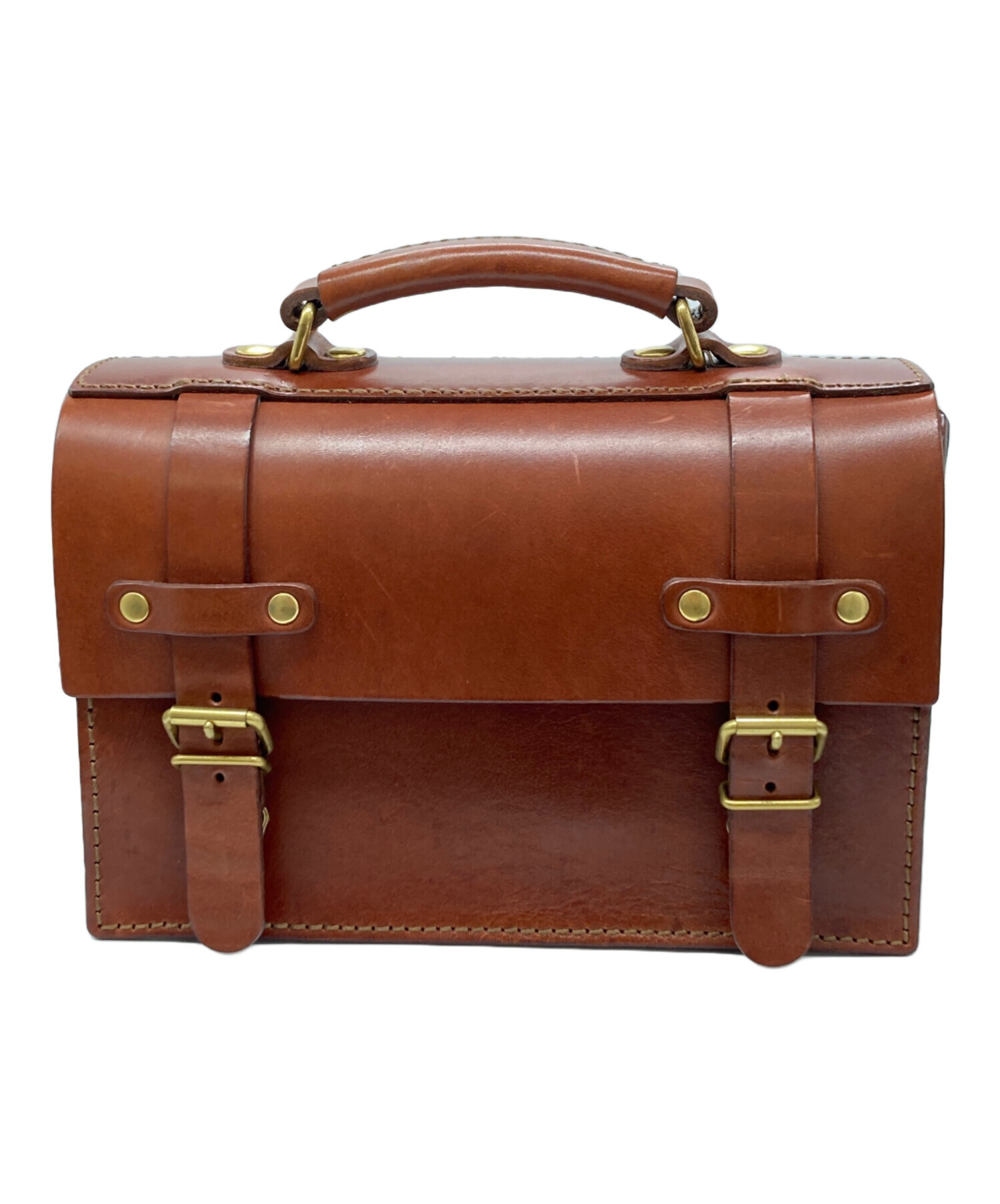 • Herz(ヘルツ)Herz (ヘルツ) 2WAY樽型レザーバッグ ブラウンの古着・服飾アイテム キズ、金具錆