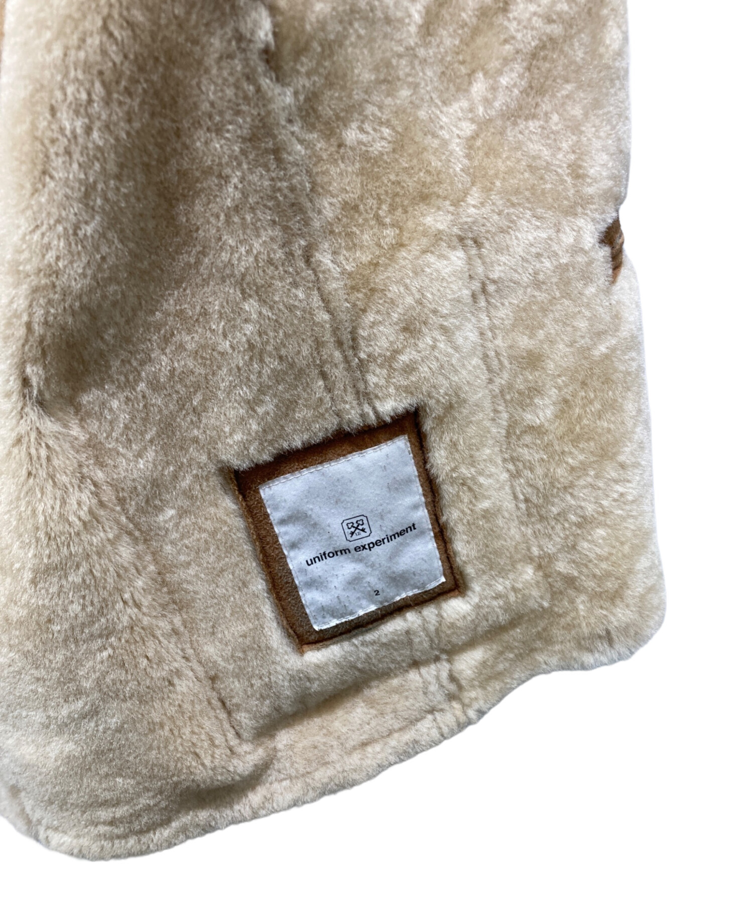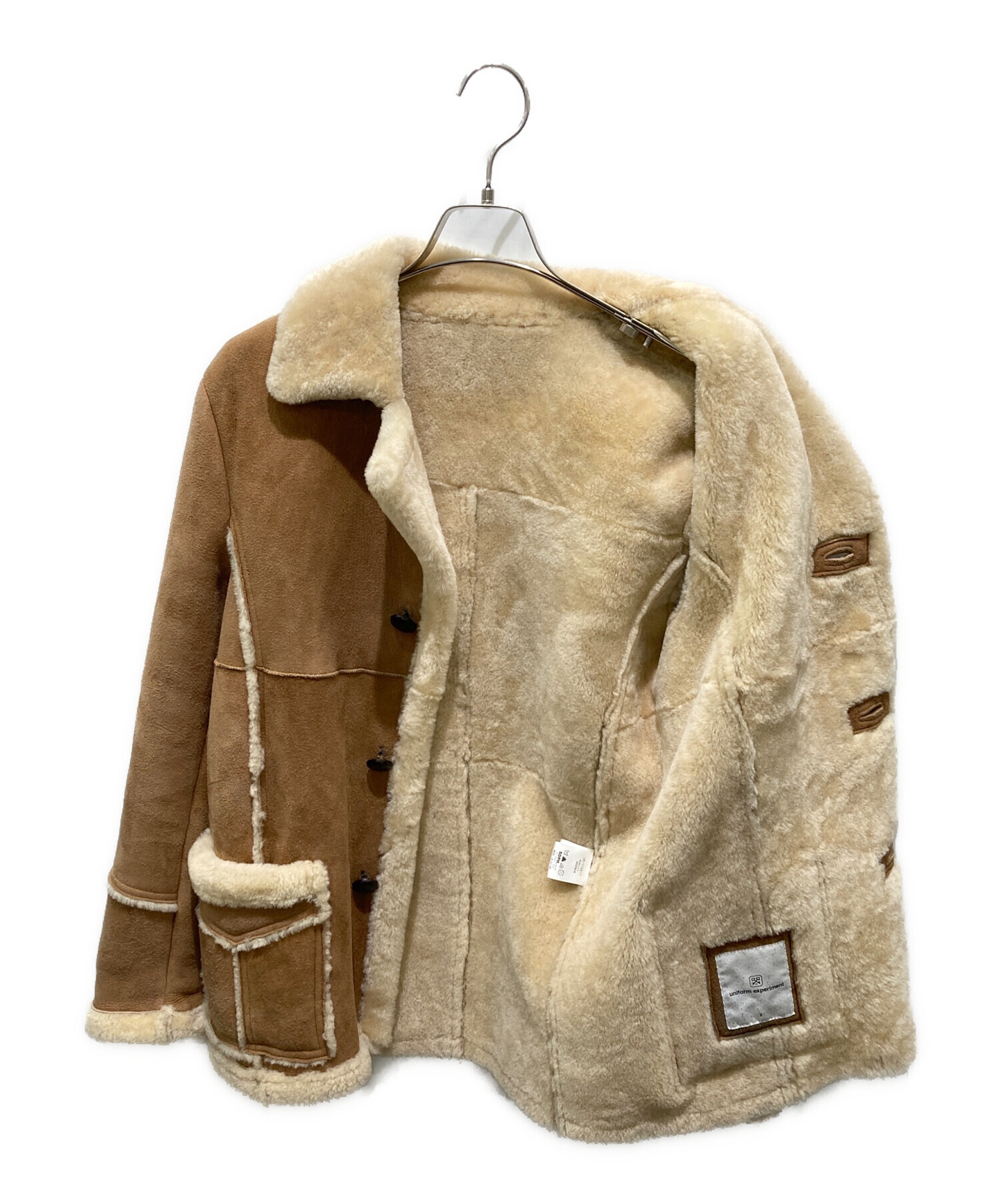 • uniform experiment(ユニフォームエクスペリメント)uniform experiment (ユニフォームエクスペリメント) ムートンジャケット ブラウン サイズ:2の古着・服飾アイテム 内部タグ毛羽立ち