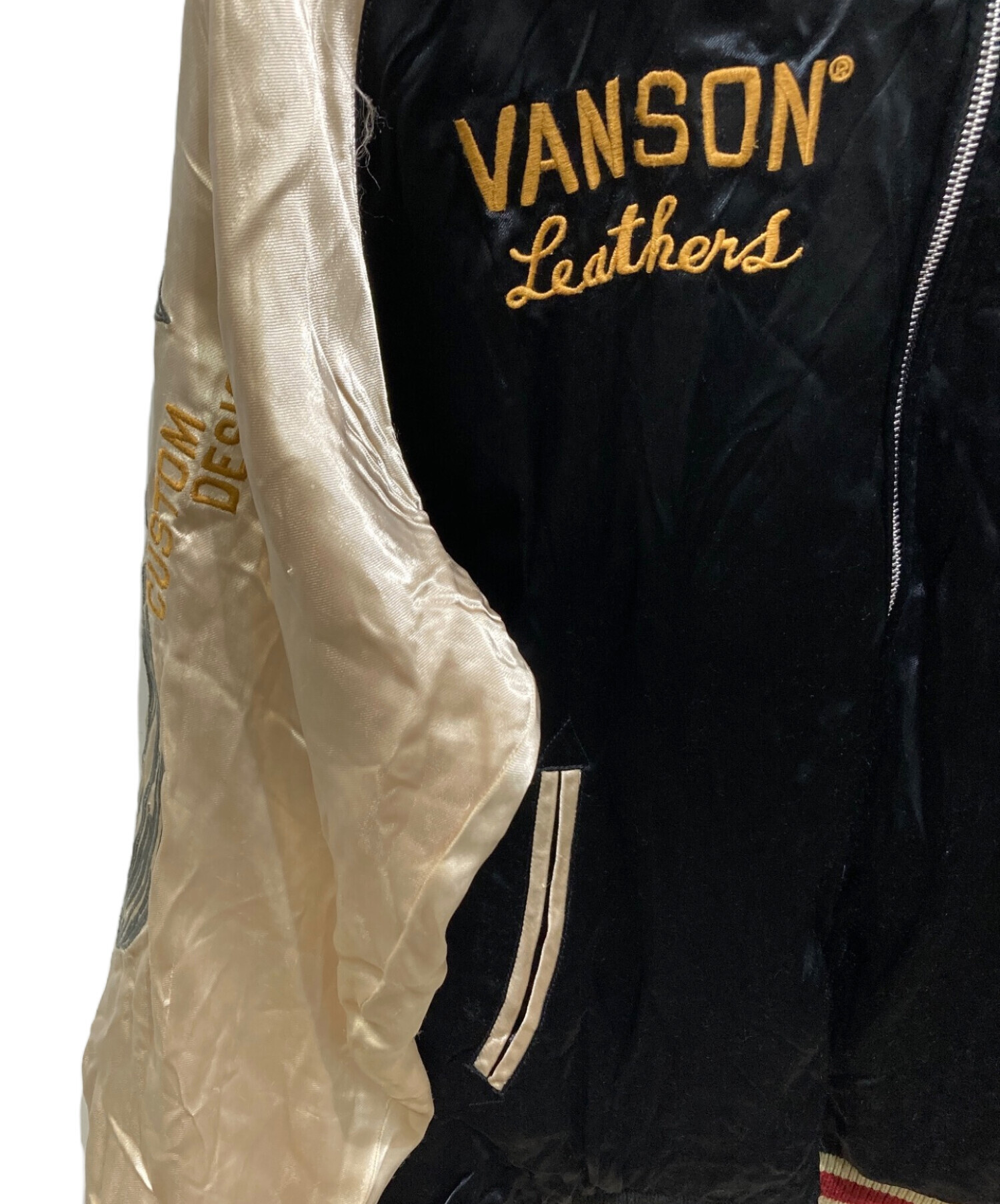 • VANSON(バンソン)VANSON (バンソン) LOONEY TUNES (ルーニーチューンズ) リバーシブル刺繍スカジャン ブラック サイズ:XLの古着・服飾アイテム 裏地フロント攣れ