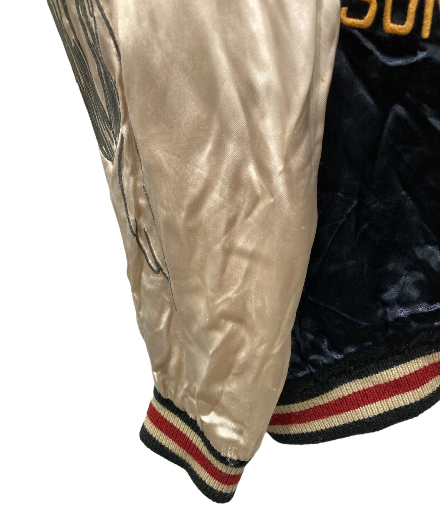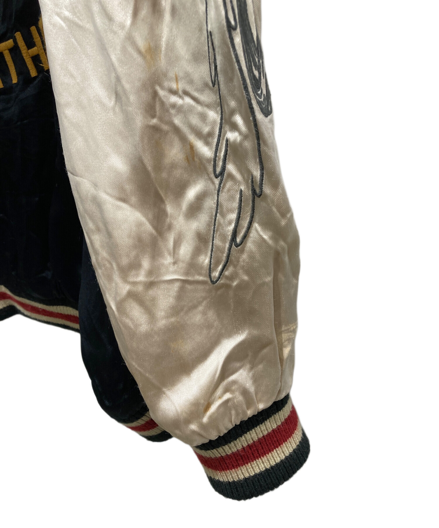 • VANSON(バンソン)VANSON (バンソン) LOONEY TUNES (ルーニーチューンズ) リバーシブル刺繍スカジャン ブラック サイズ:XLの古着・服飾アイテム 袖リブ汚れ、毛羽立ち