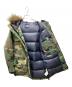 | 素材 | 表地: ナイロン100% 中綿: ダウン72% レーヨン20% その他の羽毛8% 裏地: ナイロン100% 袖口: アクリル59% 毛26% ナイロン14% ポリウレタン1% フードファー部分: パイル アクリル系80% アクリル20% 基布 ポリエステル100% |