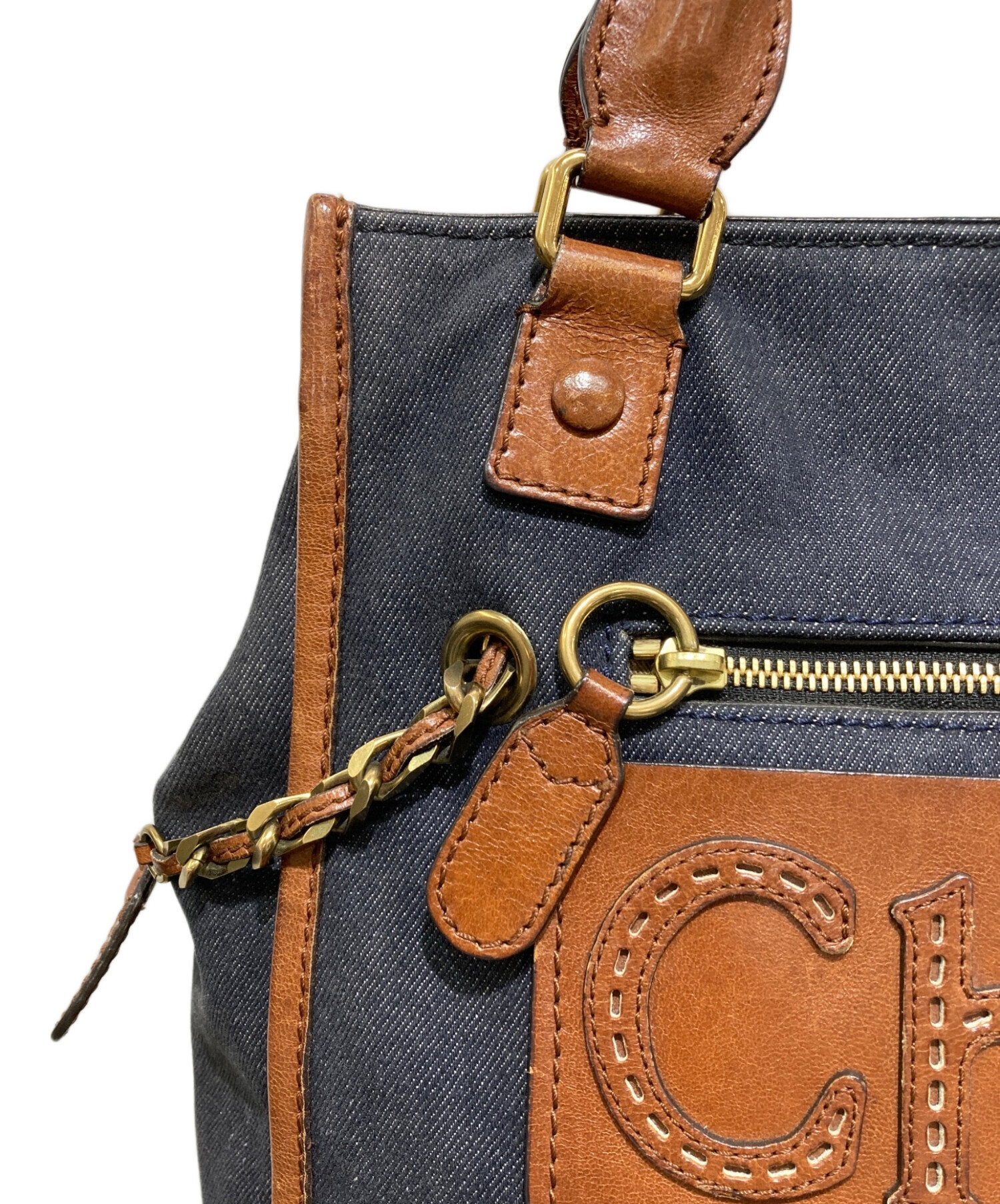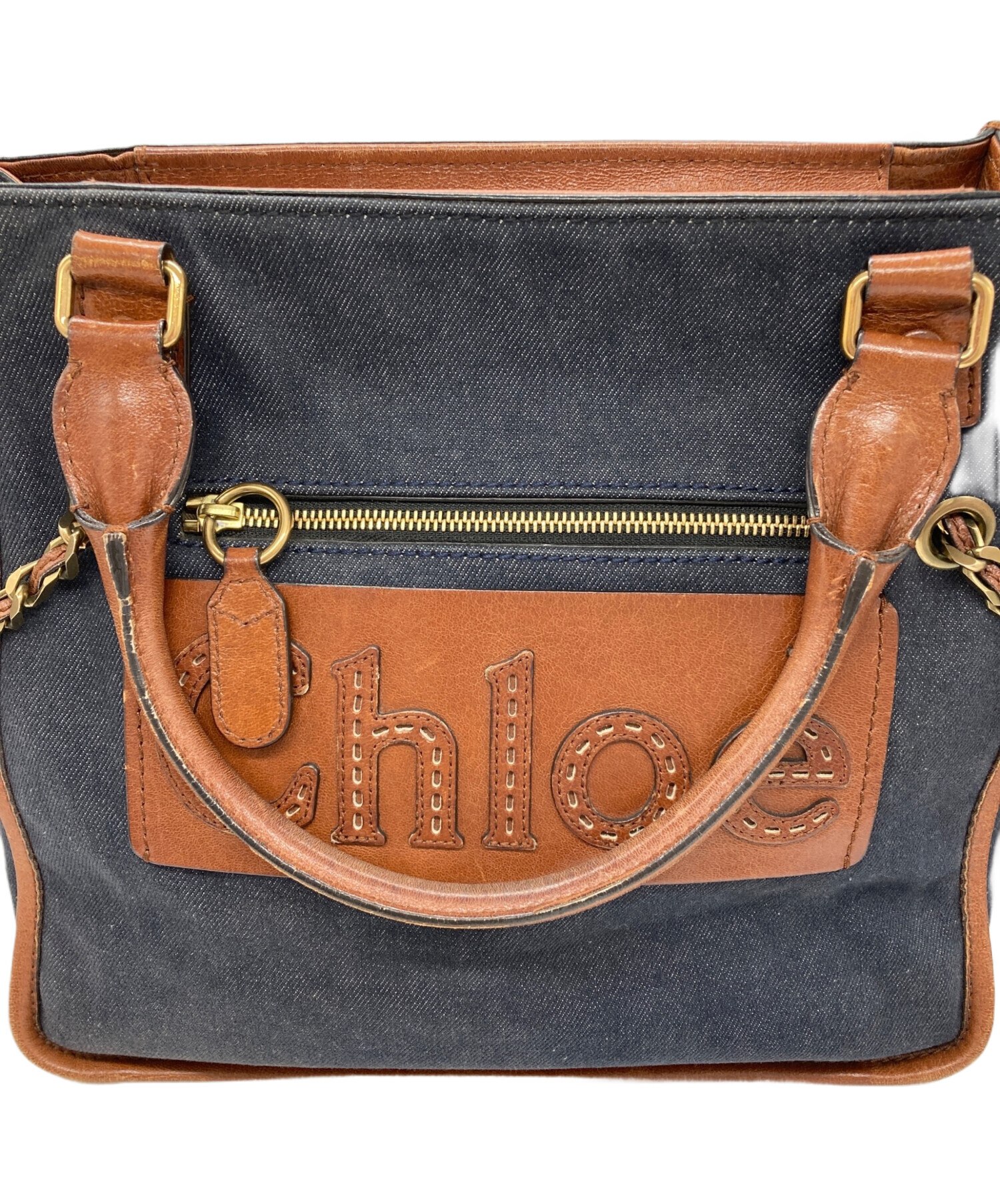 • Chloe(クロエ)Chloe (クロエ) ハーレーデニムトートバック ネイビーの古着・服飾アイテム 擦れ