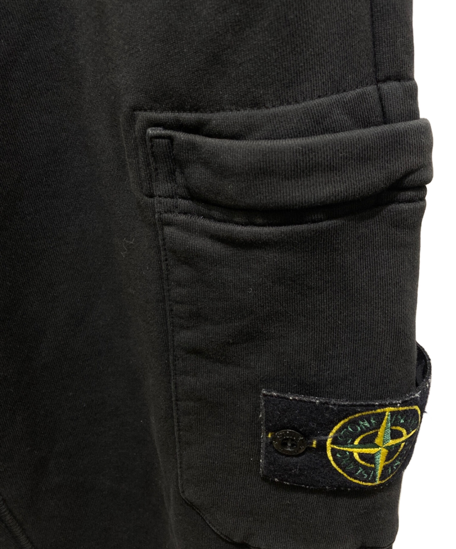 • STONE ISLAND(ストーンアイランド)STONE ISLAND (ストーンアイランド) FLEECE PANTS ブラック サイズ:Mの古着・服飾アイテム 右ポケット小穴