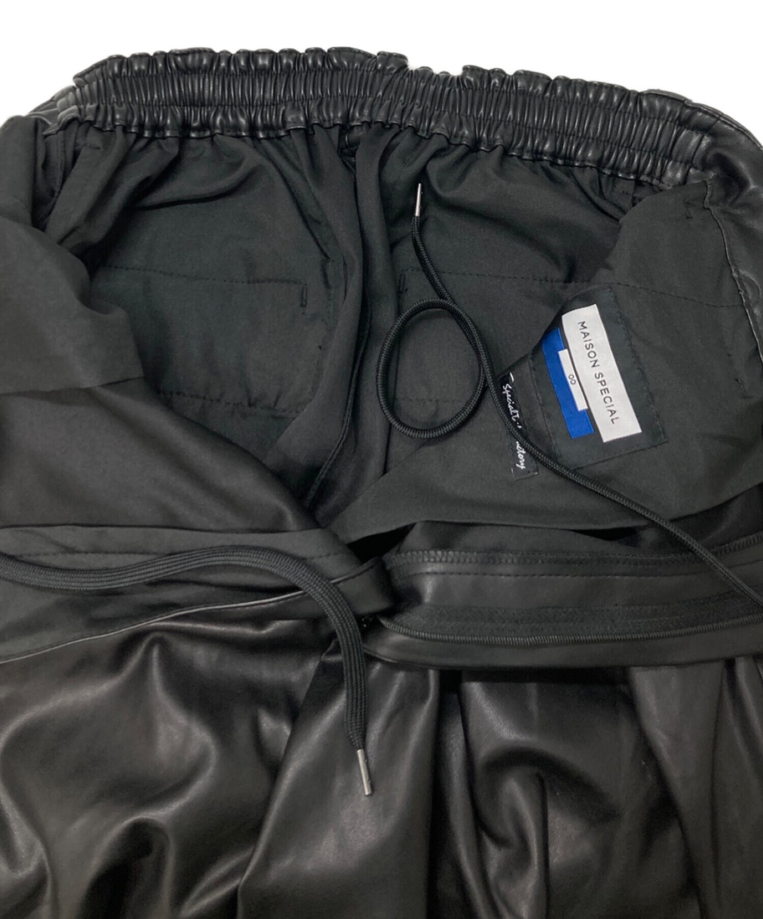• MAISON SPECIAL(メゾンスペシャル)MAISON SPECIAL (メゾンスペシャル) ロイヤルレザー2タックイージープライムワイドショーツ ブラック サイズ:Sの古着・服飾アイテム ハンガー跡・剥がれ有