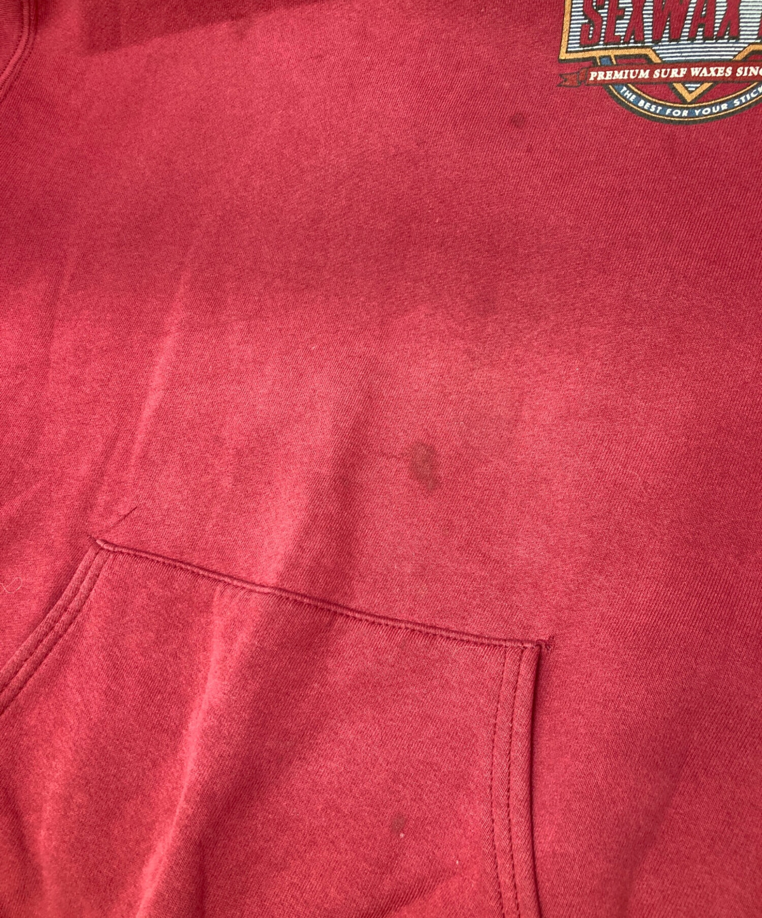 • SEX WAX(セックスワックス)SEX WAX (セックスワックス) パーカー レッド サイズ:XLの古着・服飾アイテム フロント汚れ有