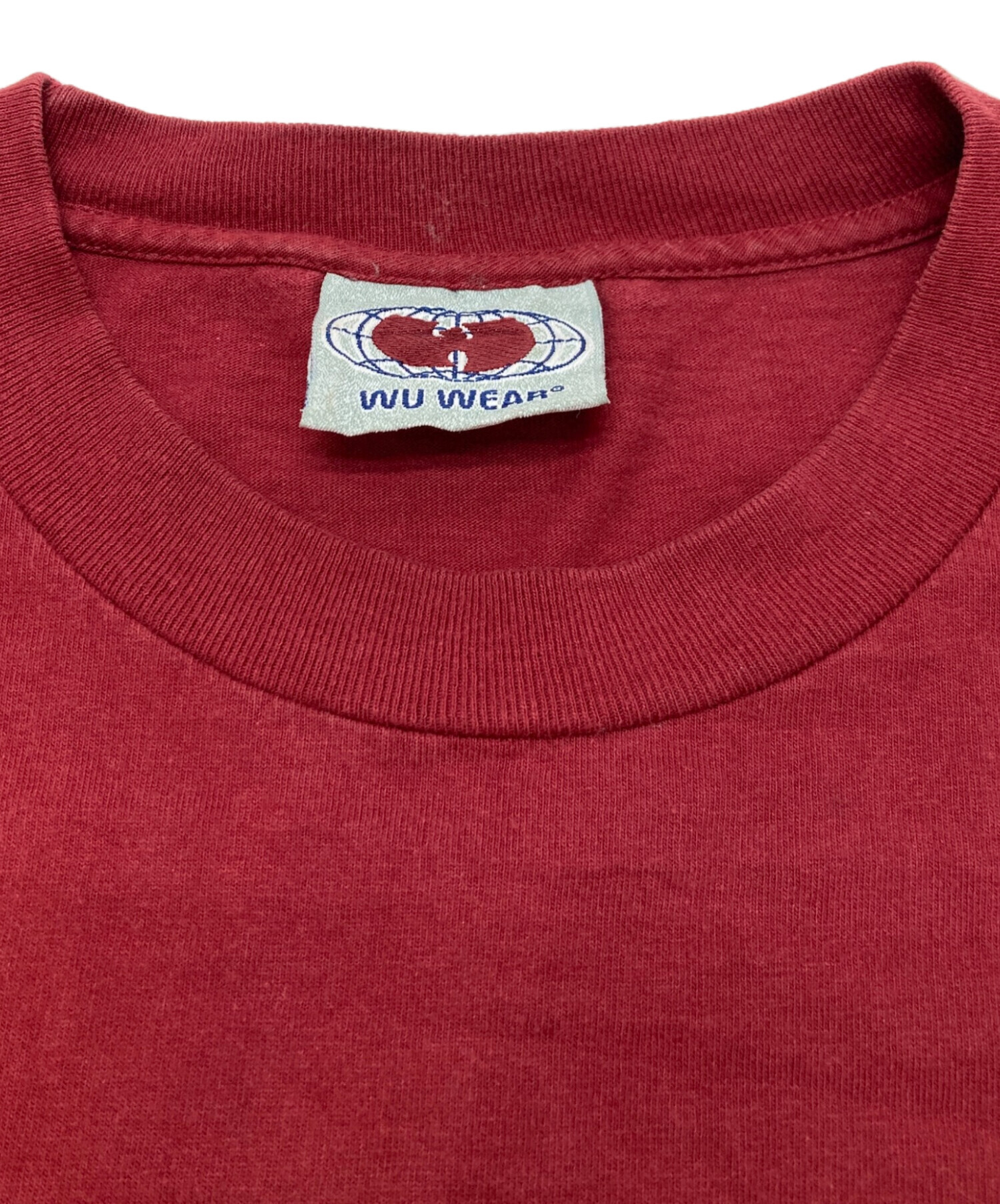 • WU WEAR(ウーウェアー)WU WEAR (ウーウェアー) ロングスリーブカットソー レッド サイズ:不明(実寸参照)の古着・服飾アイテム プリント割れ有