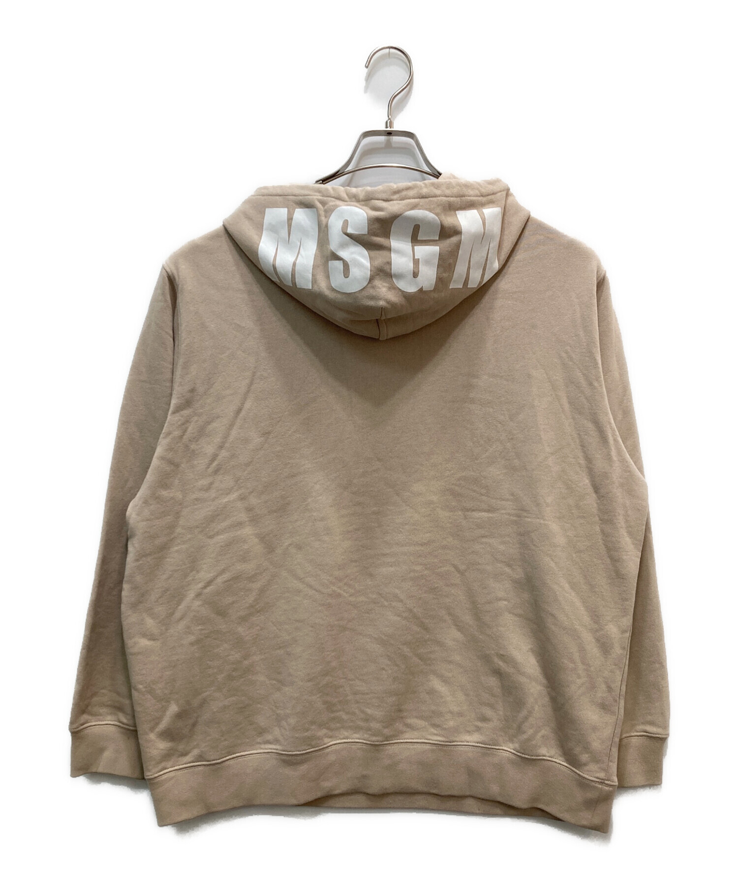 • MSGM(エムエスジーエム)MSGM (エムエスジーエム) フードロゴスウェットパーカー ベージュ サイズ:Sの古着・服飾アイテム 汚れ有