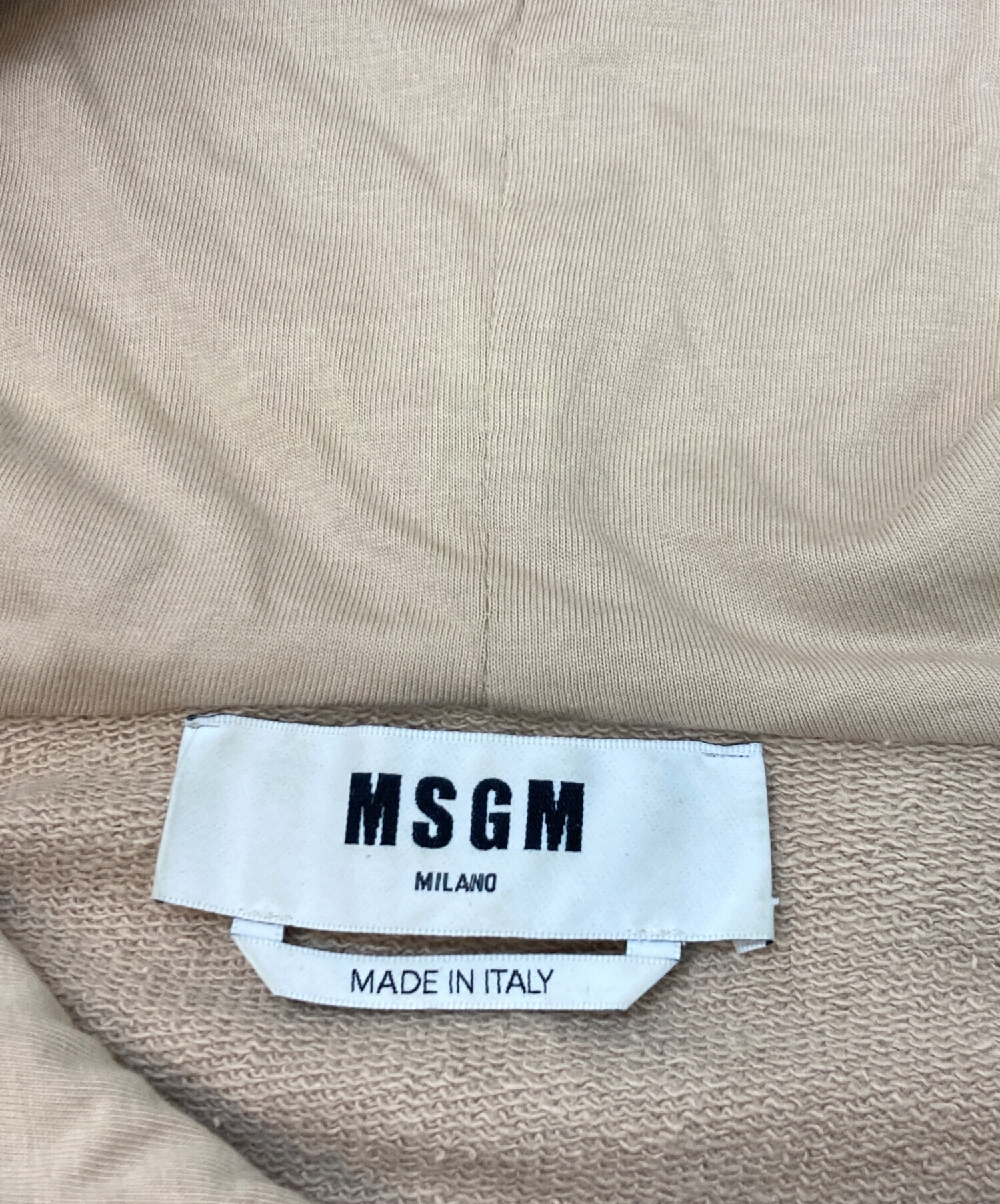 • MSGM(エムエスジーエム)MSGM (エムエスジーエム) フードロゴスウェットパーカー ベージュ サイズ:Sの古着・服飾アイテム 内部毛羽立ち有
