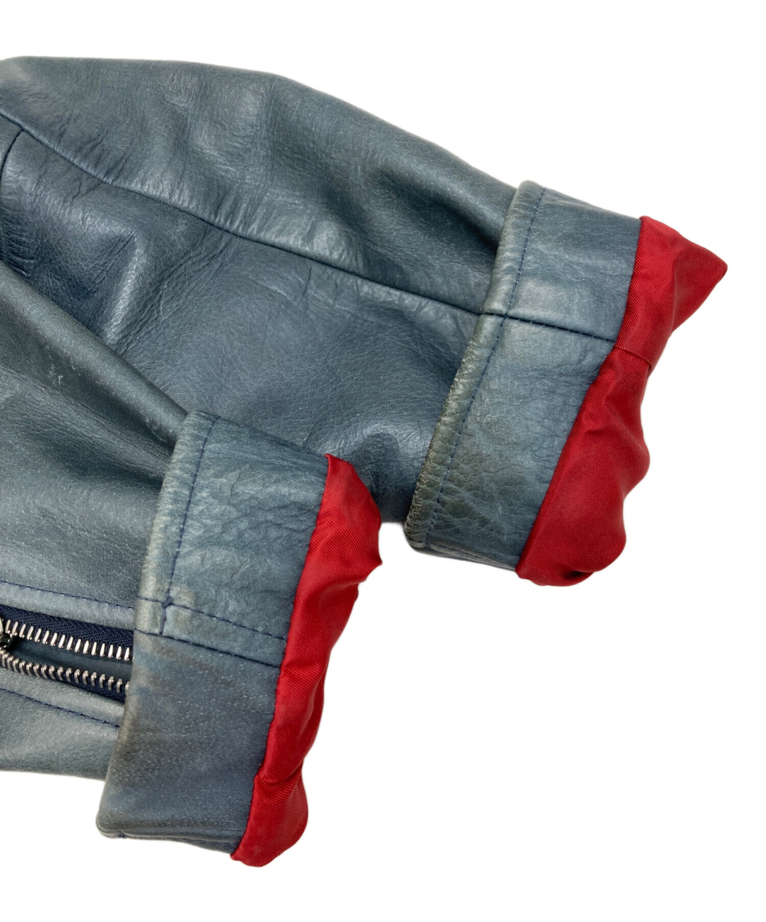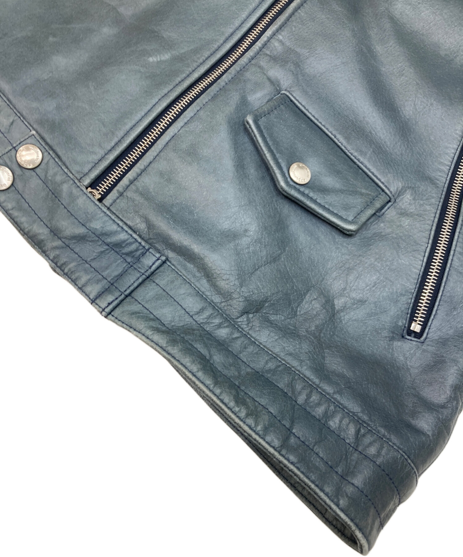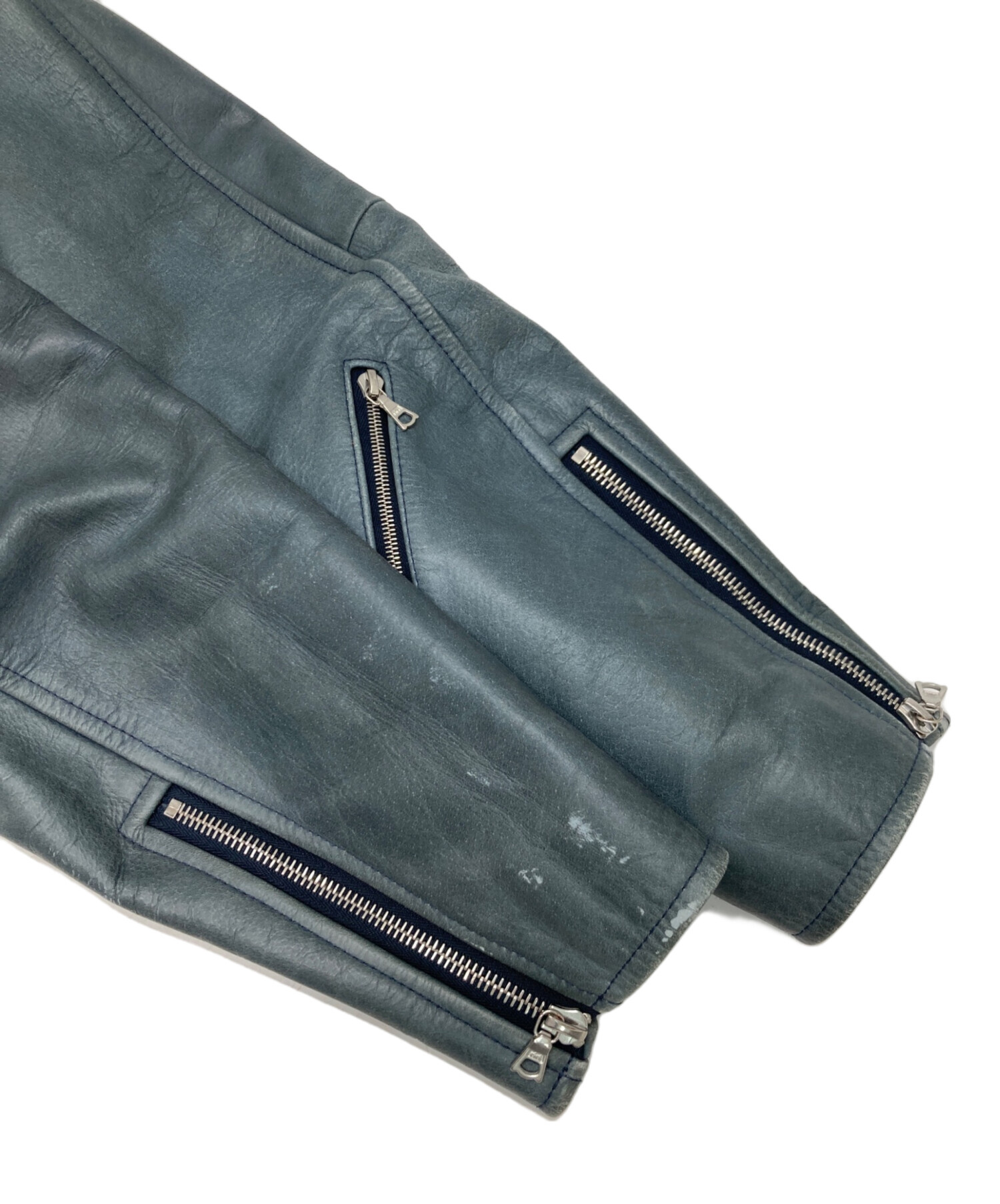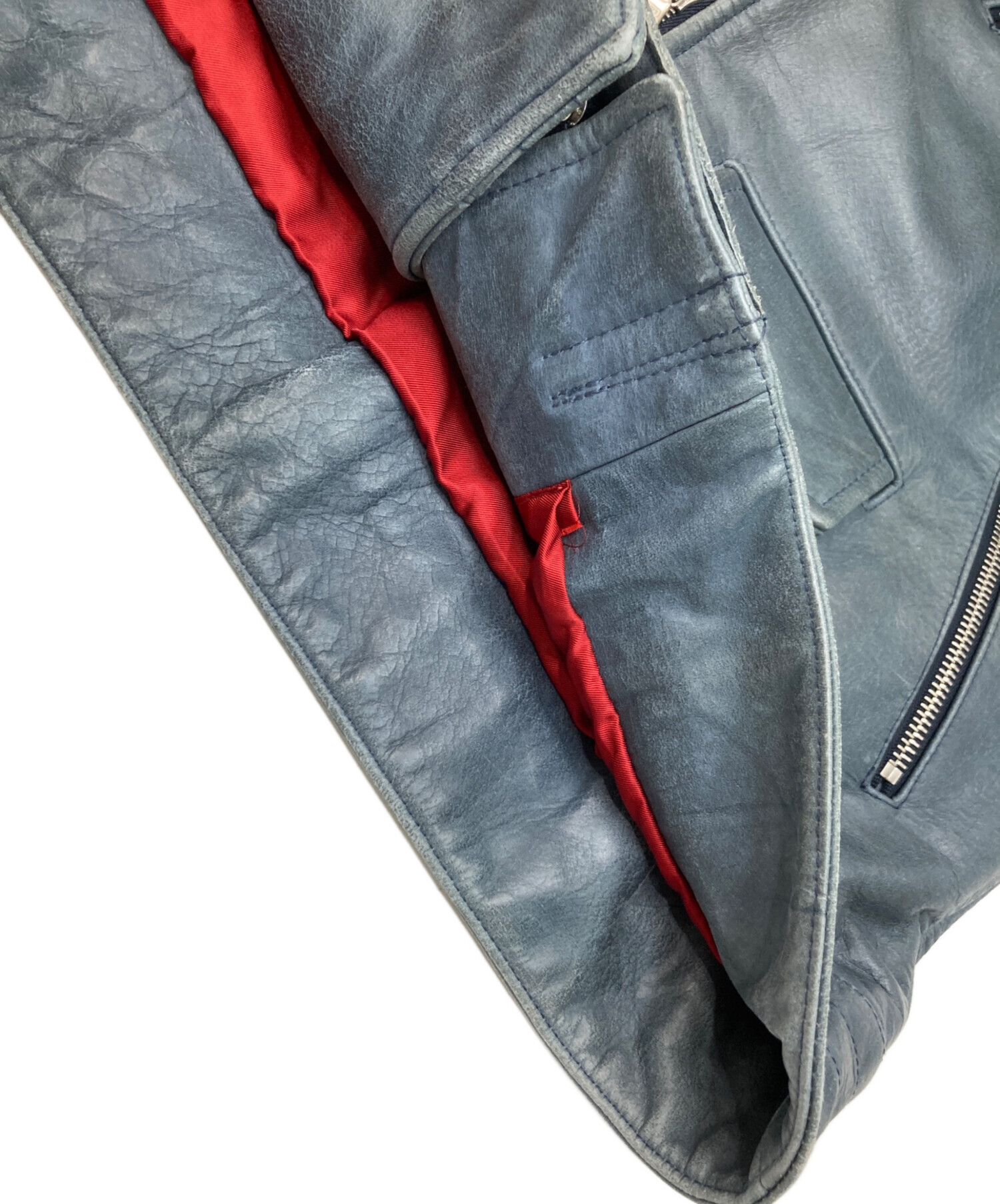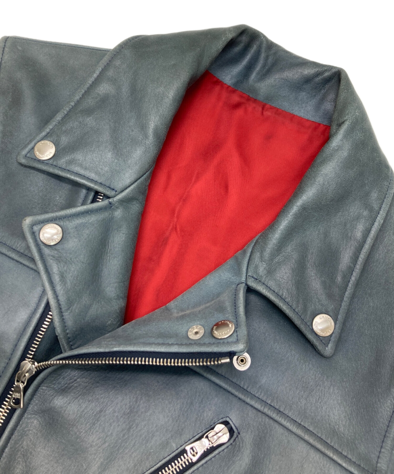 • uniform experiment(ユニフォームエクスペリメント)uniform experiment (ユニフォームエクスペリメント) ダブルライダースジャケット ブルー サイズ:2の古着・服飾アイテム スレ、汚れ有