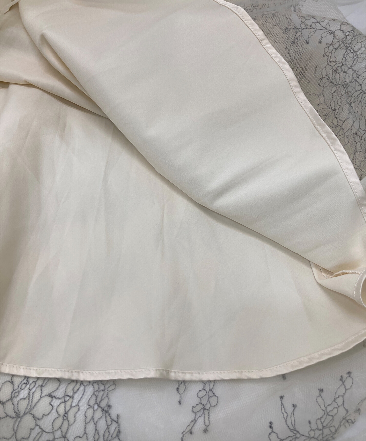 | 素材 | 表地: ナイロン 67% ポリエステル 33% オーガンジー部分: ナイロン 100% チュール部分: ポリエステル 100% 裏地: ポリエステル 95% ポリウレタン 5% |