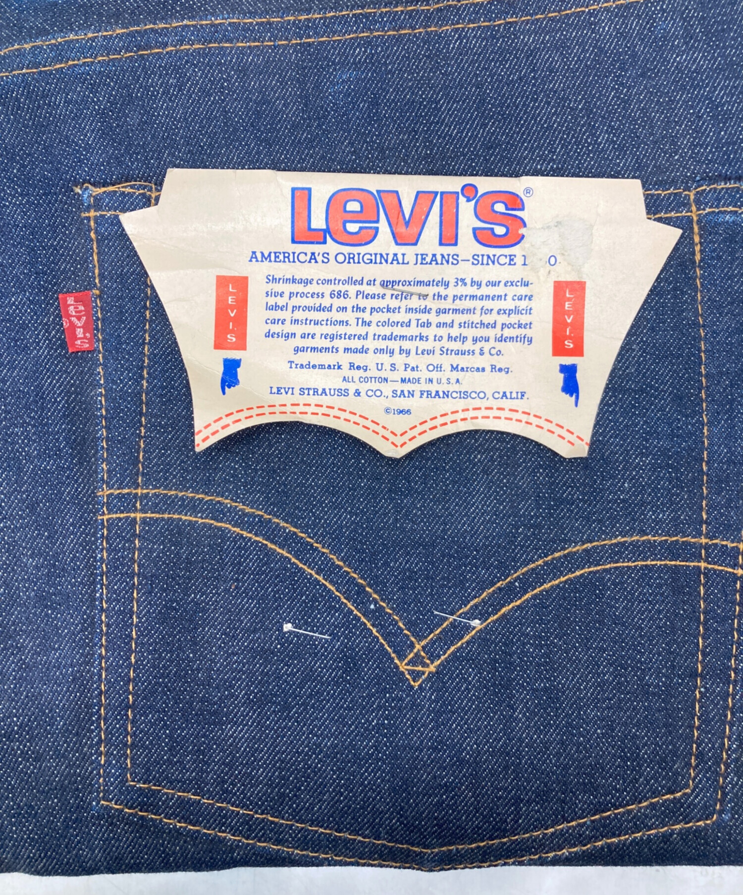 | スタッフコメント | フラッシャー付 デッドストック66前期 オリジナルレングス 赤耳 ボタン裏5刻印 ポケット裏シングル 42TALON 74年製 |