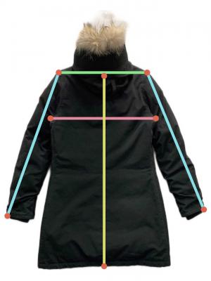 | 素材 | 表地: ポリエステル 85% 綿 15% 裏地: ナイロン 100% 中綿: ダウン 80% フェザー 20% 毛皮部分: コヨーテ |