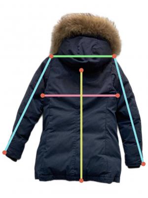 | 素材 | 表地: 綿 74% ナイロン 26% 裏地: ナイロン 100% 詰物: ダウン 90% フェザー 10% 毛皮部分: ラクーン |