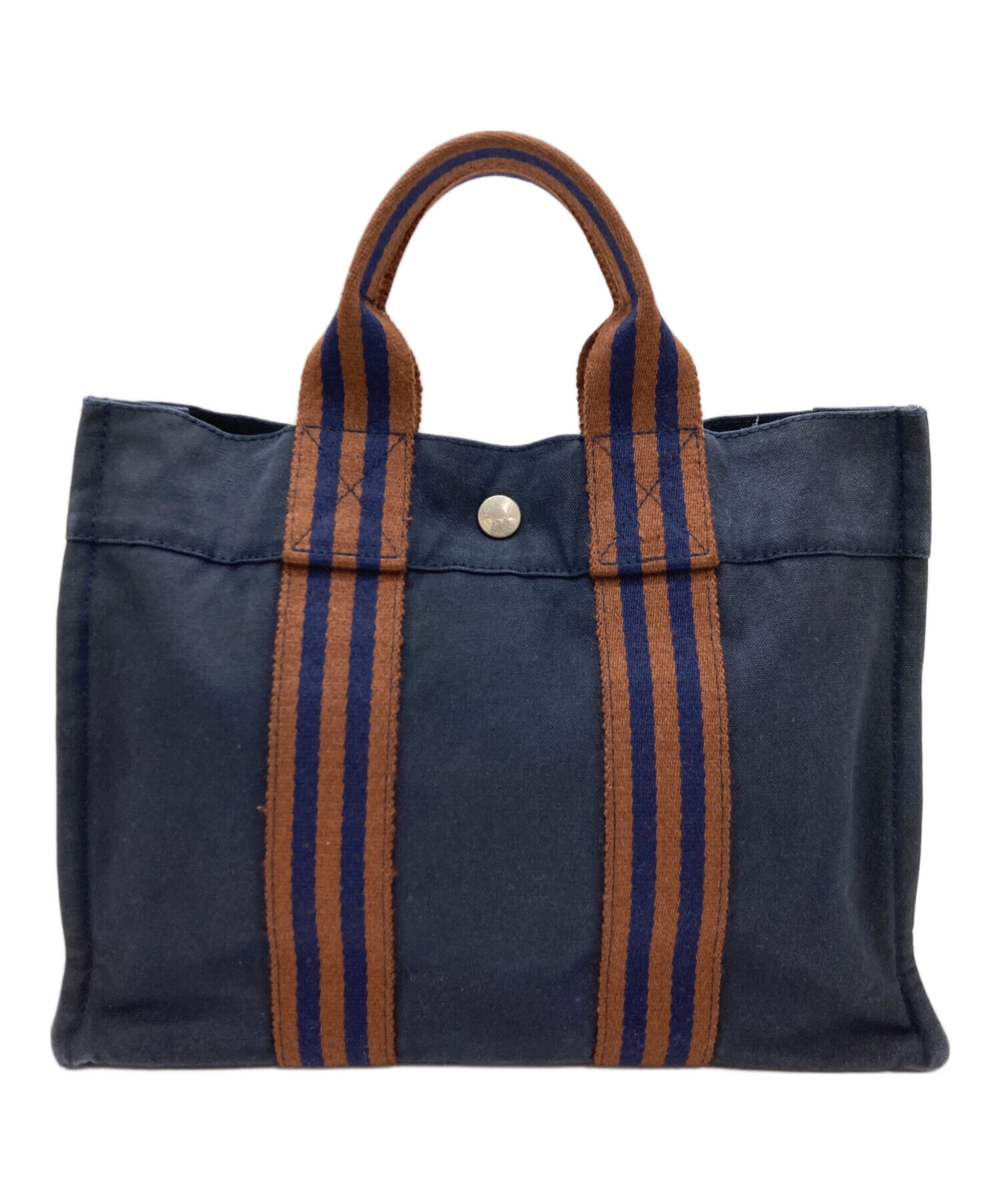 • HERMES(エルメス)HERMES (エルメス) ハンドバッグ ブラウン×ネイビーの古着・服飾アイテム 汚れ、アタリ有
