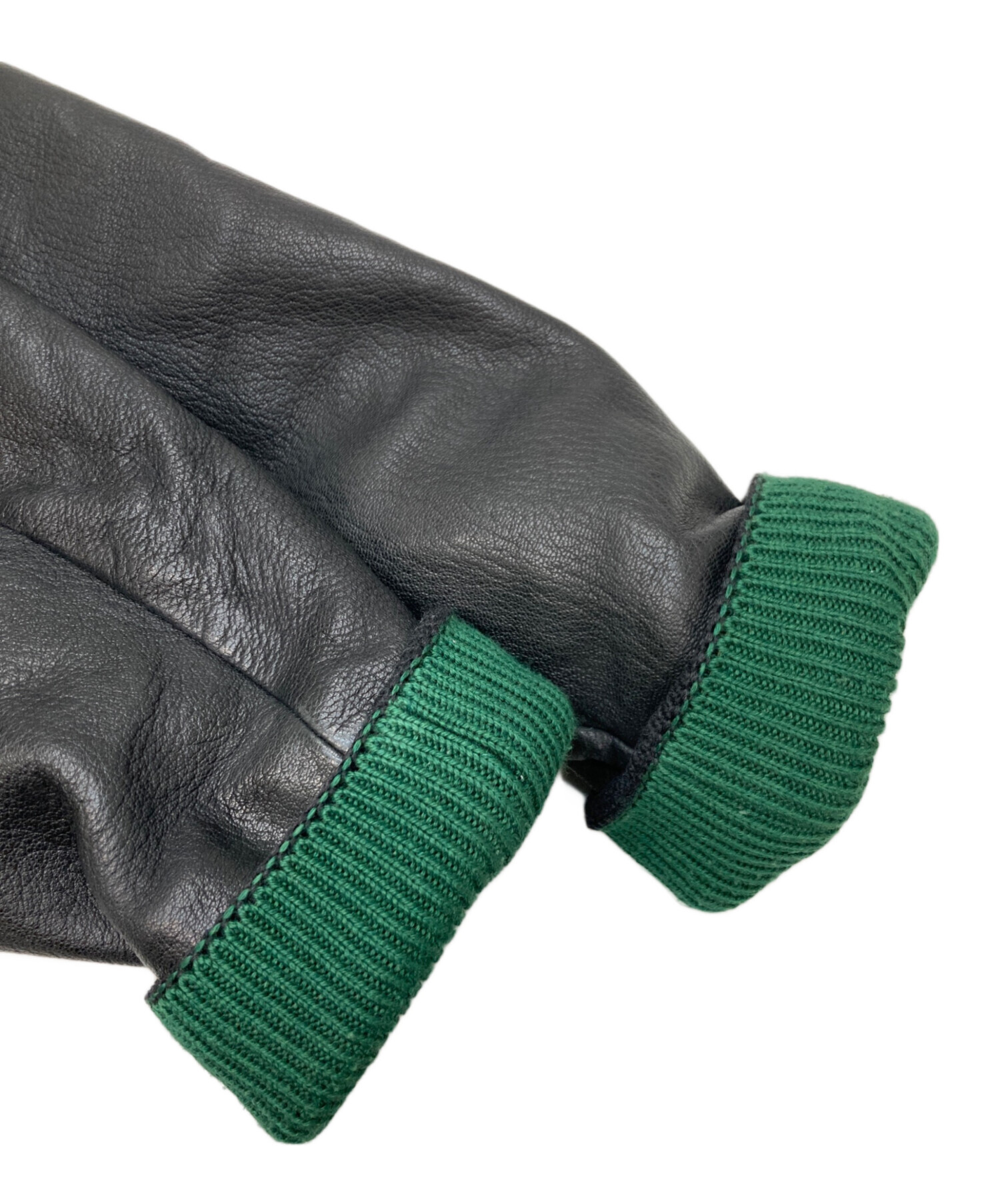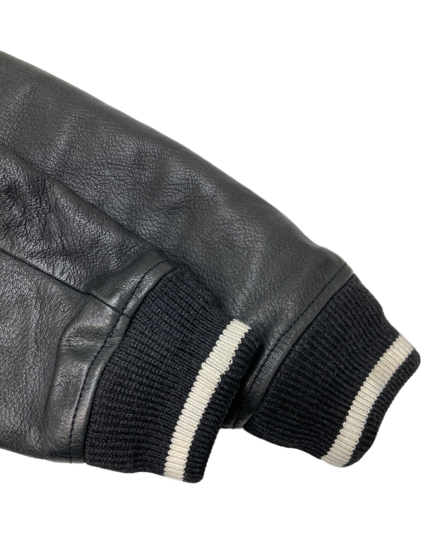 ✳︎タグ・袖口に汚れ、リブ部分に毛羽立ち、レザー部分にシワ・スレがございます。