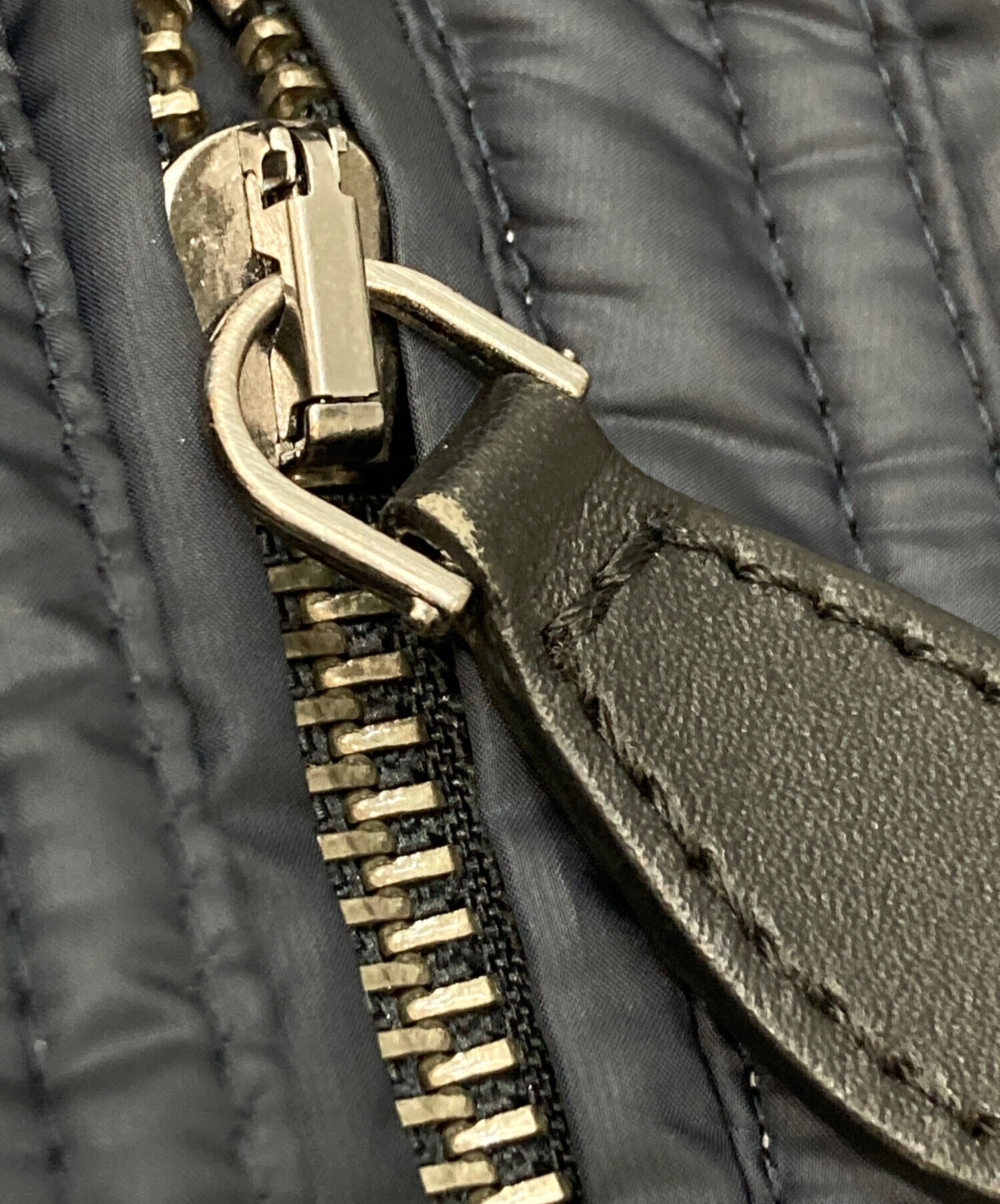 | 状態 | こちらの商品は中古品の為、使用に伴います細かなキズ、汚れがございます。店頭にて展示販売を行っている為、記載に無い細かなキズ、汚れが見受けられる場合がございます。 ※金具、レザー部分にスレ、ファスナー付近にダメージがございます。 ※襟、袖口、裾に汚れがございます。 |