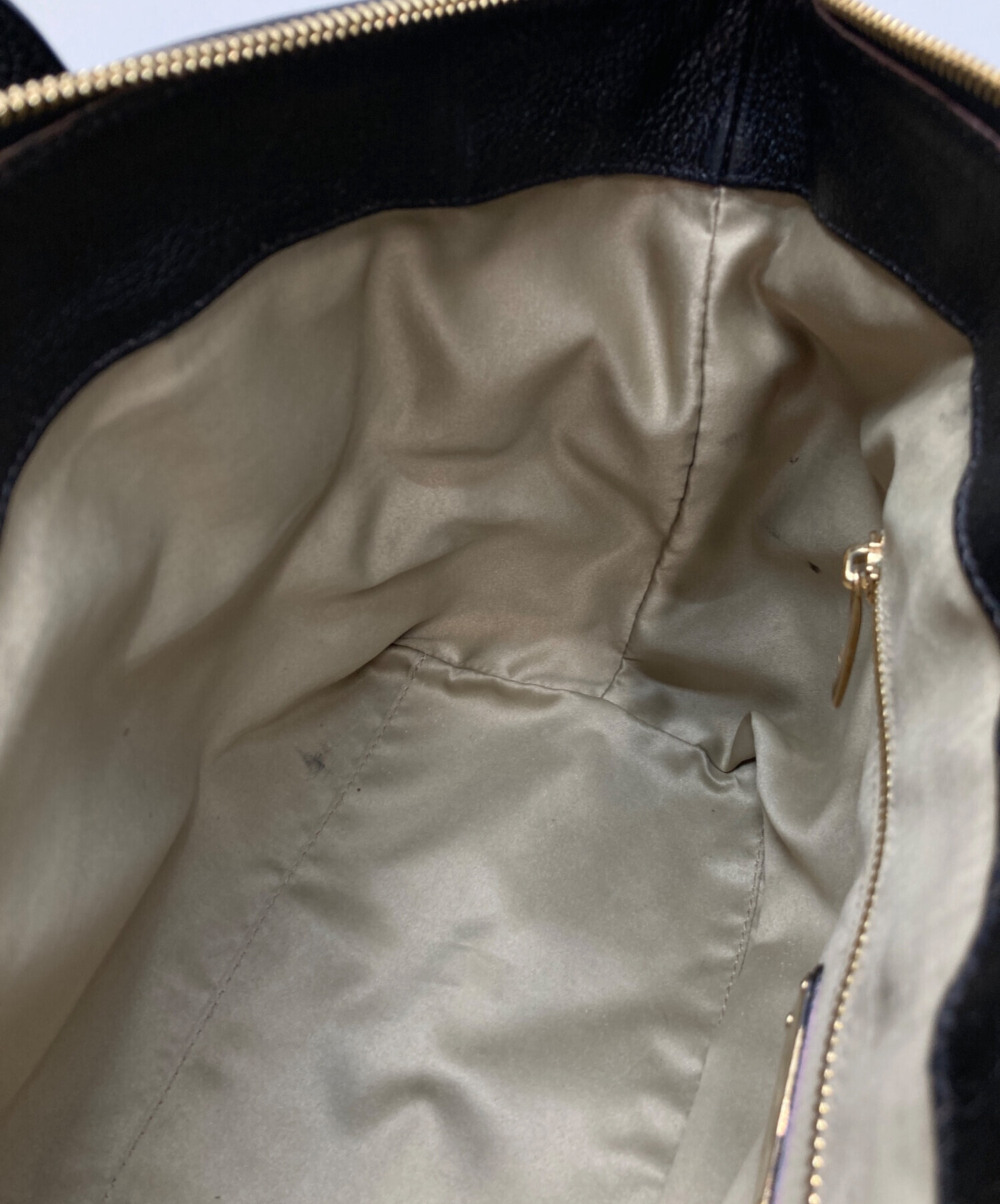 | 状態 | こちらの商品は中古品の為、使用に伴いますキズ、汚れが各所に見受けられます。店頭にて展示販売を行っている為、記載に無い細かなキズ、汚れが見受けられる場合がございます。 ※内部にスレやベタつき、金具部分にキズ、角にスレがございます。 ※型崩れ、ストラップにダメージ、コバに割れ、各所に汚れがございます。 |