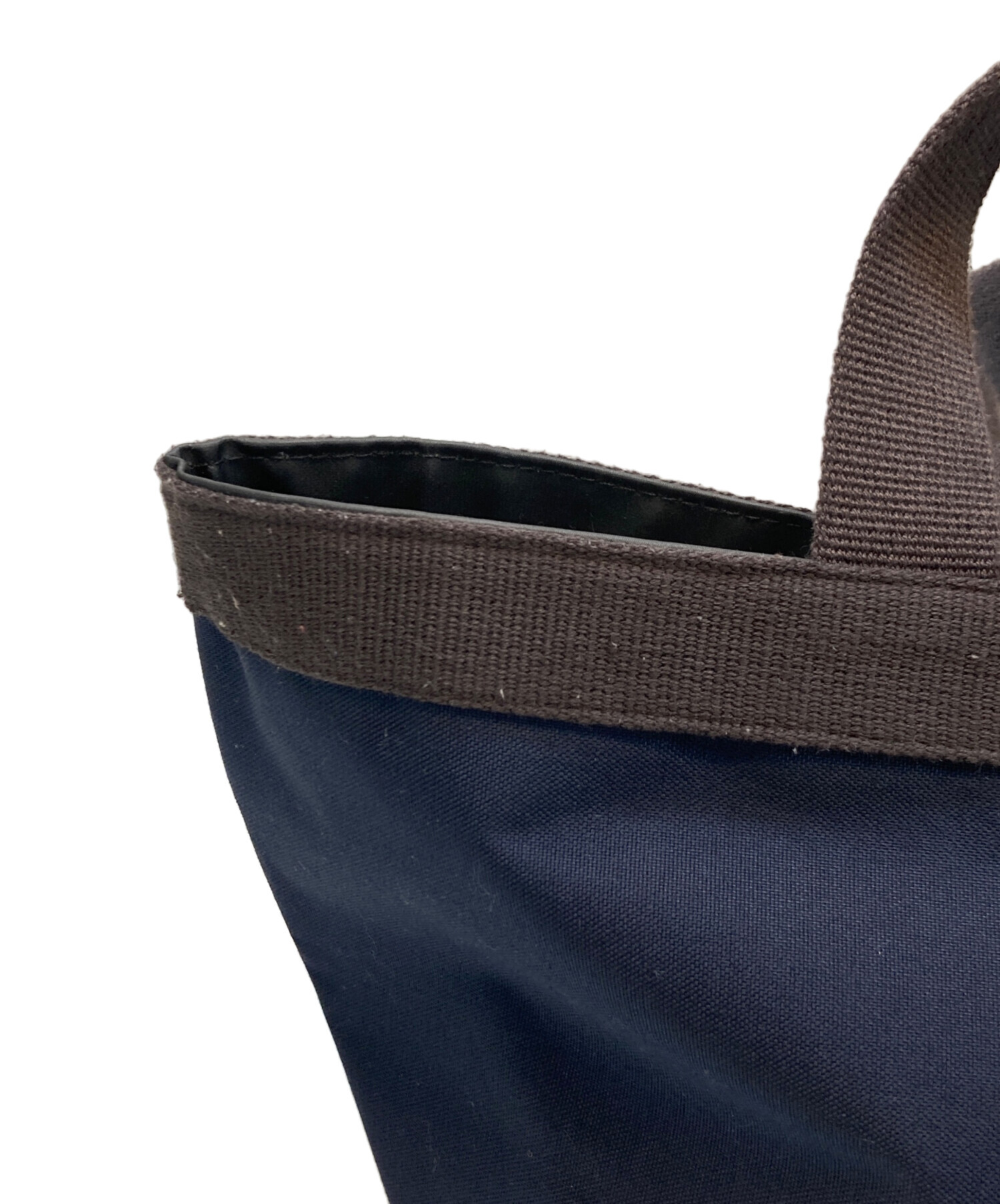 • Herve Chapelier(エルベシャプリエ)Herve Chapelier (エルベシャプリエ) 707c舟型トートMサイズ ネイビーxモカの古着・服飾アイテム 持ち手毛玉、ダメージ有