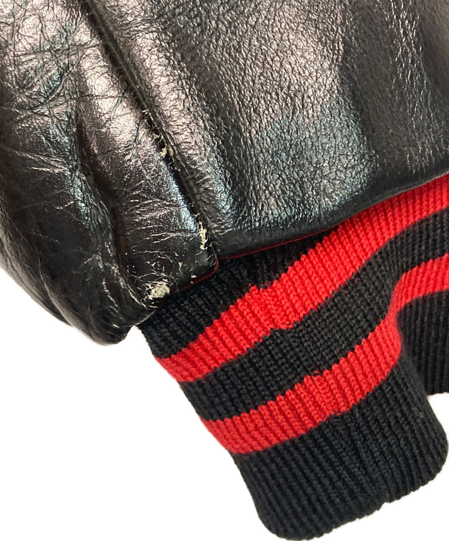 • Holloway(ホロウェイ)Holloway (ホロウェイ) 袖レザースタジャン レッド×ブラック サイズ:SIZE 42の古着・服飾アイテム 使用感有