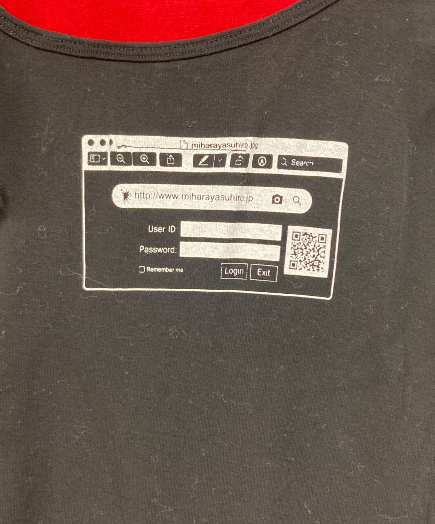 • Maison MIHARA YASUHIRO(メゾン ミハラ ヤスヒロ)Maison MIHARA YASUHIRO (メゾン ミハラ ヤスヒロ) プリントドッキングワンピース ブラック×レッド サイズ:38の古着・服飾アイテム 右袖付近ヨゴレ有