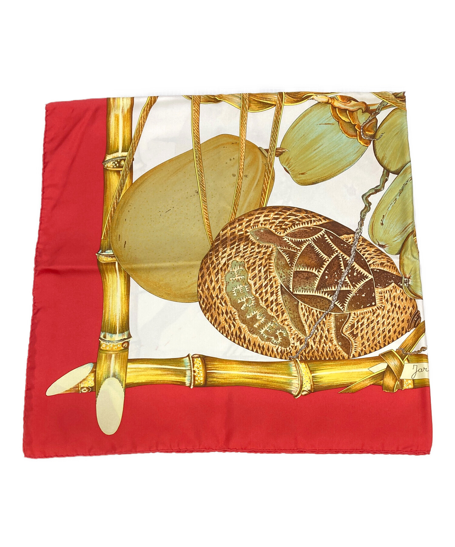 • HERMES(エルメス)HERMES (エルメス) カレ90 クレオルの楽園 レッドの古着・服飾アイテム ヨゴレ