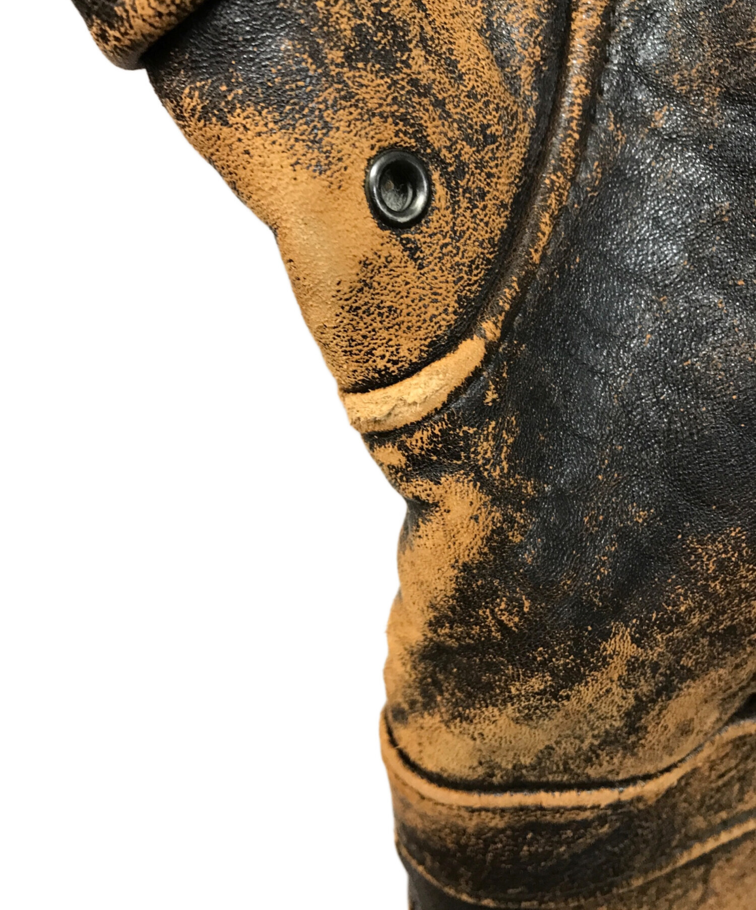 | 状態 | こちらの商品は中古品の為、使用に伴いますキズ、汚れが各所に見受けられます。 特にレザー全体的に劣化が見られ、ジッパー付近等よくスレの起きる部分については完全に剥げている箇所がございます。 店頭にて展示販売を行っている為、記載に無い細かなキズ、汚れが見受けられる場合がございます。 |