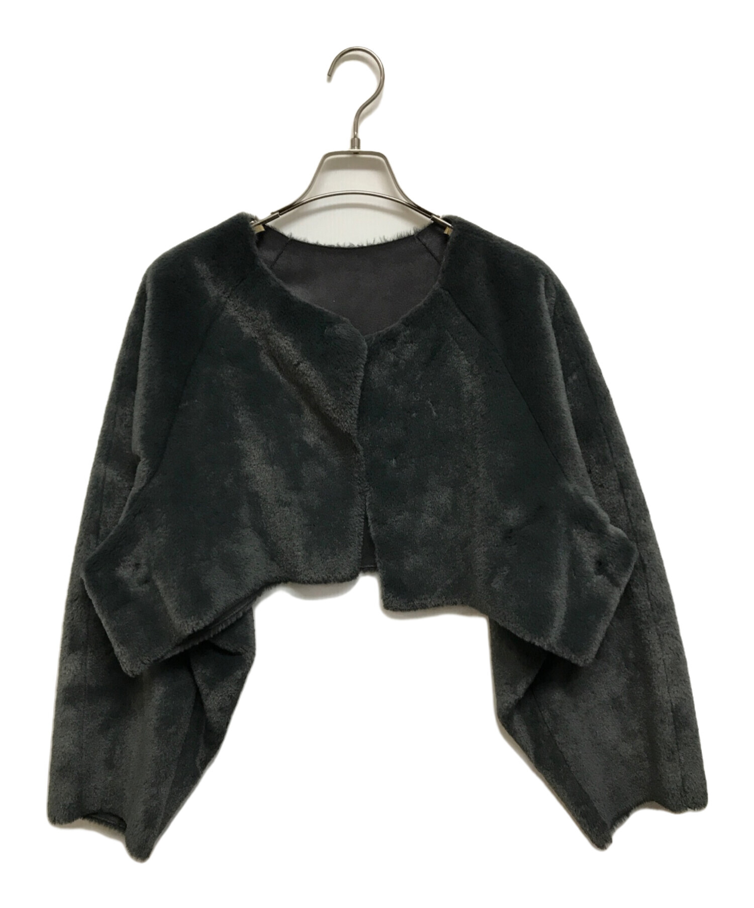 | スタッフコメント | つやっとした毛と裏地までしっかりと革の様子を作り込まれたフェイクファー、レザーのコートです。 ボタンなどでの接続なくボレロが付属しており、別々の着用も可能でございます。 |