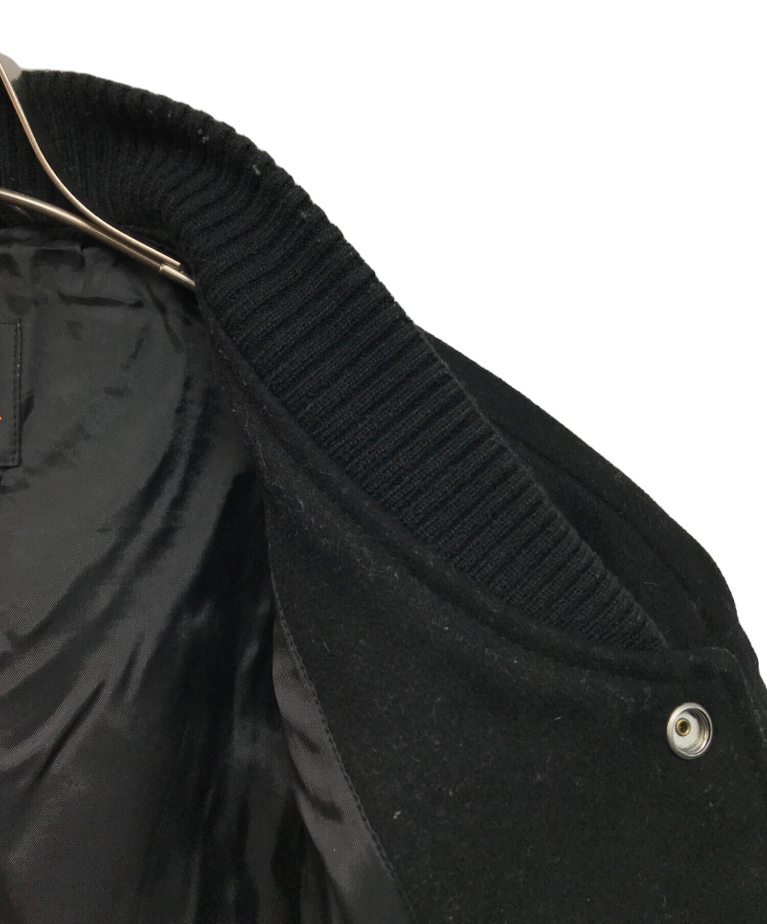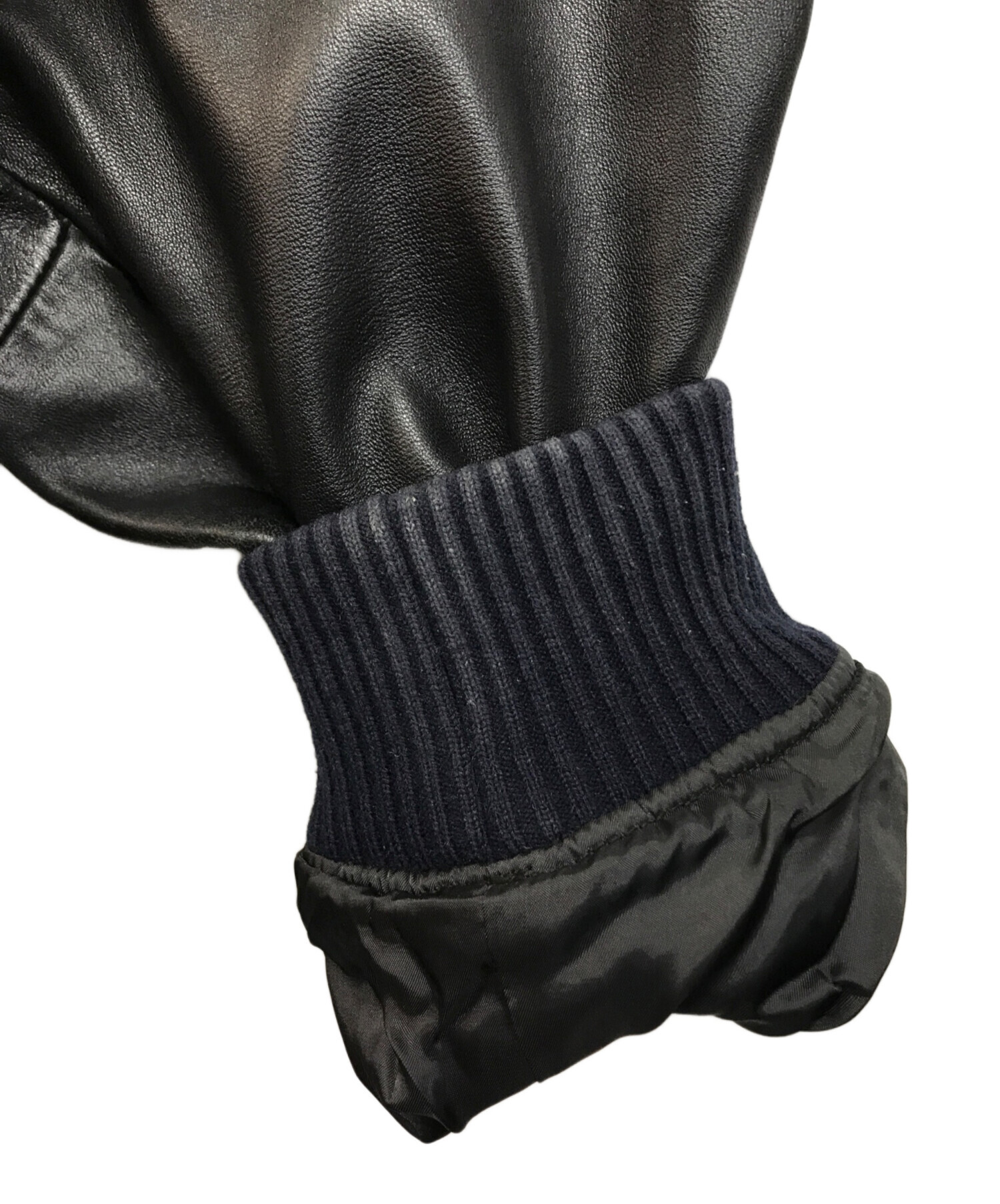 | 素材 | 表生地 身頃部分: 毛 50% ポリエステル 50% レザー部分: 羊革 裏生地: レーヨン 53% ポリエステル 47% リブ部分: アクリル 62% 毛 26% ポリエステル 12% |