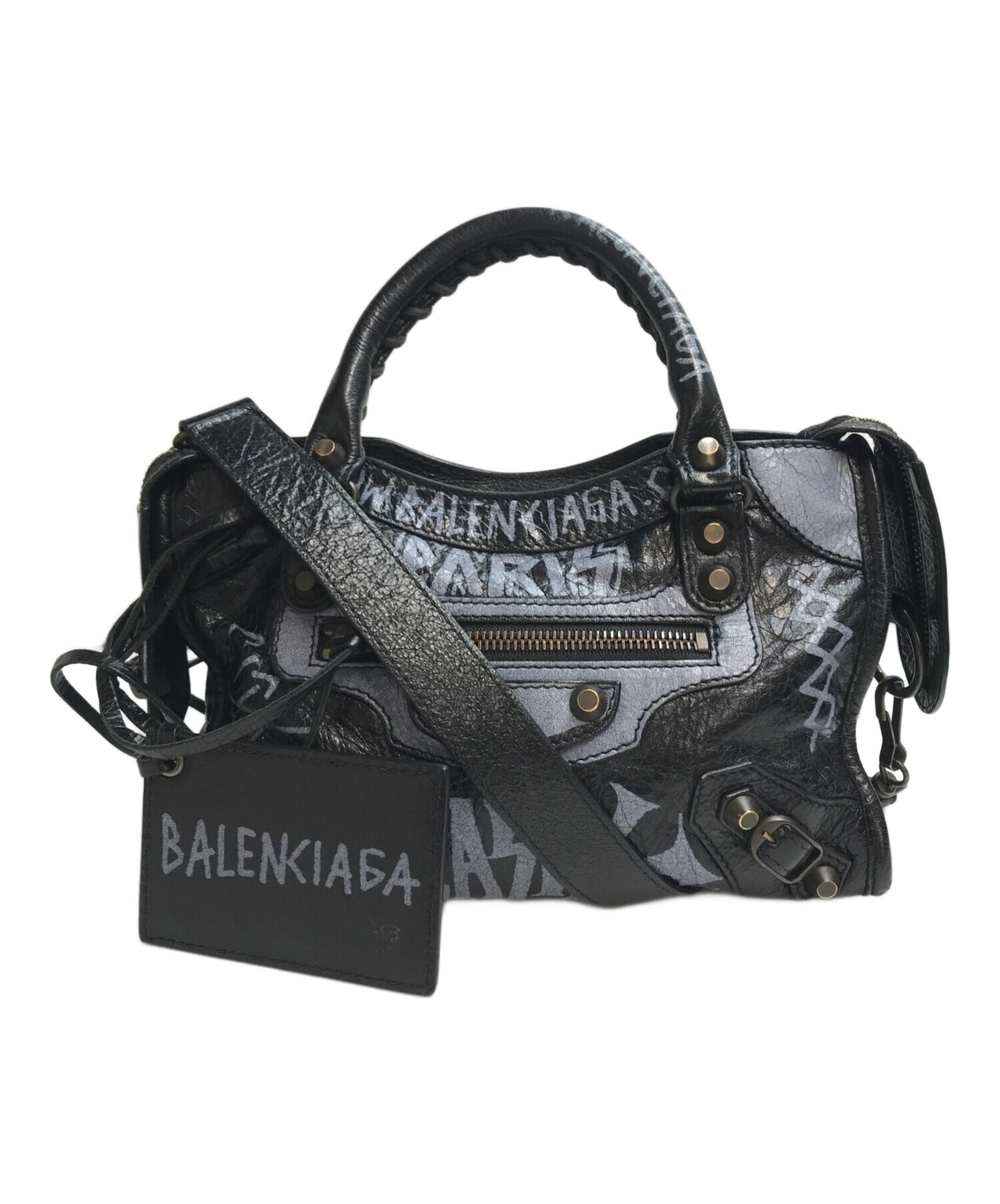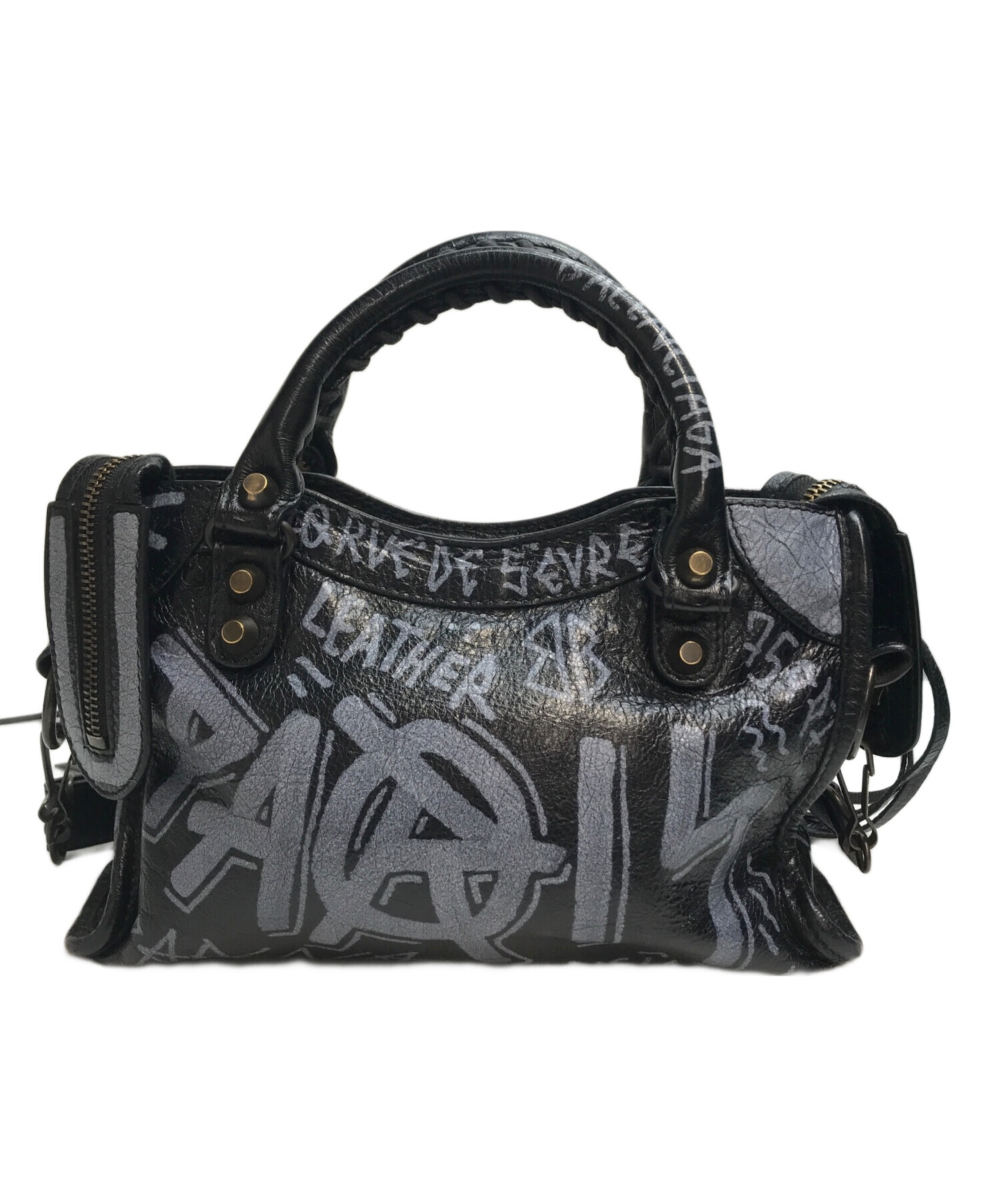 • BALENCIAGA(バレンシアガ)BALENCIAGA (バレンシアガ) クラシックミニシティグラフィックペイント 2WAYバッグ ブラックの古着・服飾アイテム ハンドル使用感有