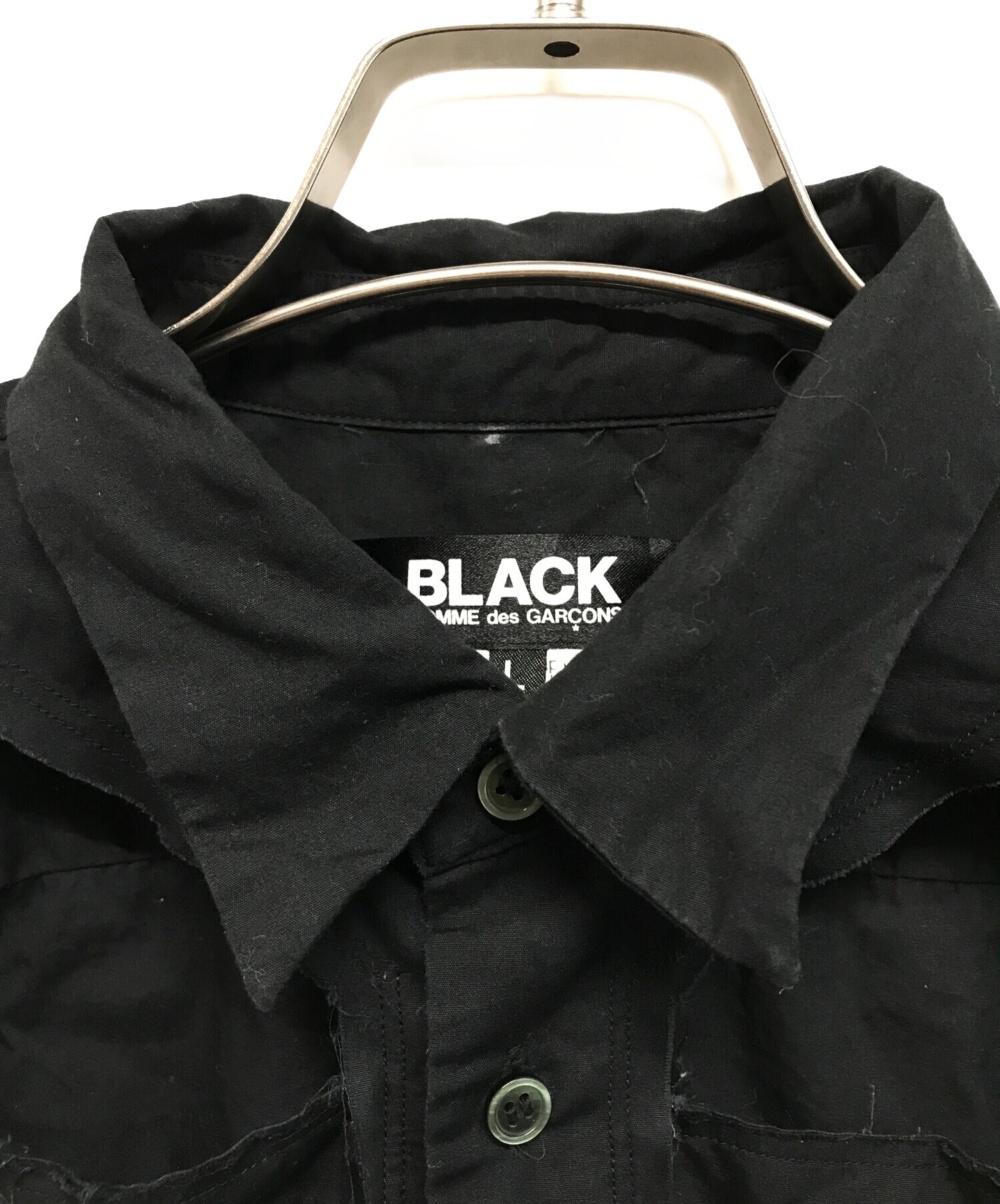 • BLACK COMME des GARCONS(ブラックコムデギャルソン)BLACK COMME des GARCONS (ブラックコムデギャルソン) デストロイ加工シャツ ブラック サイズ:Lの古着・服飾アイテム 若干毛羽立ち有
