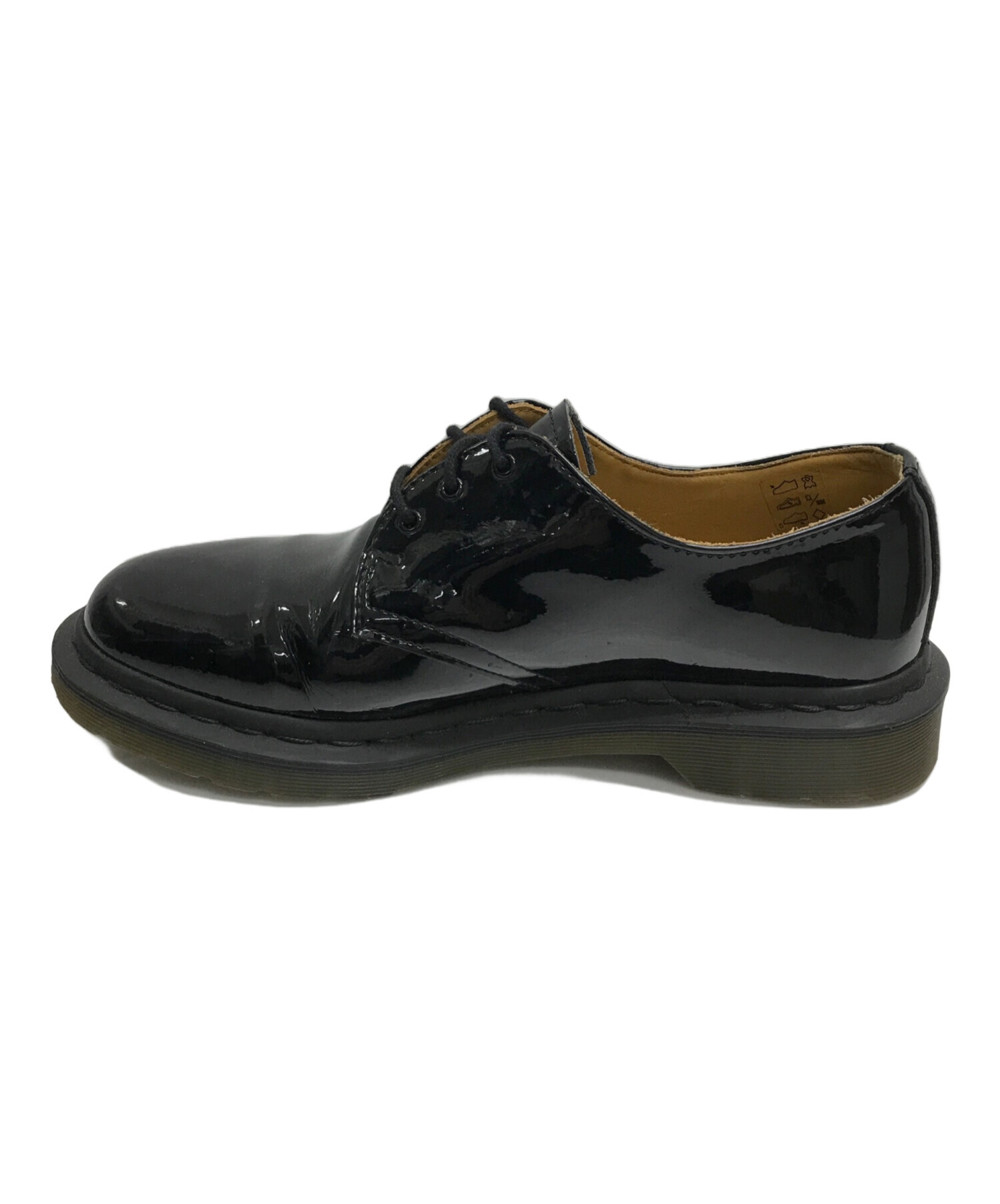 • Dr.Martens(ドクターマーチン)Dr.Martens (ドクターマーチン) RAY BEAMS (レイ ビームス) 別注パテント3eyeシューズ(別注パテント3アイシューズ) ブラック サイズ:UK7の古着・服飾アイテム かかとアウトソール部分削れ