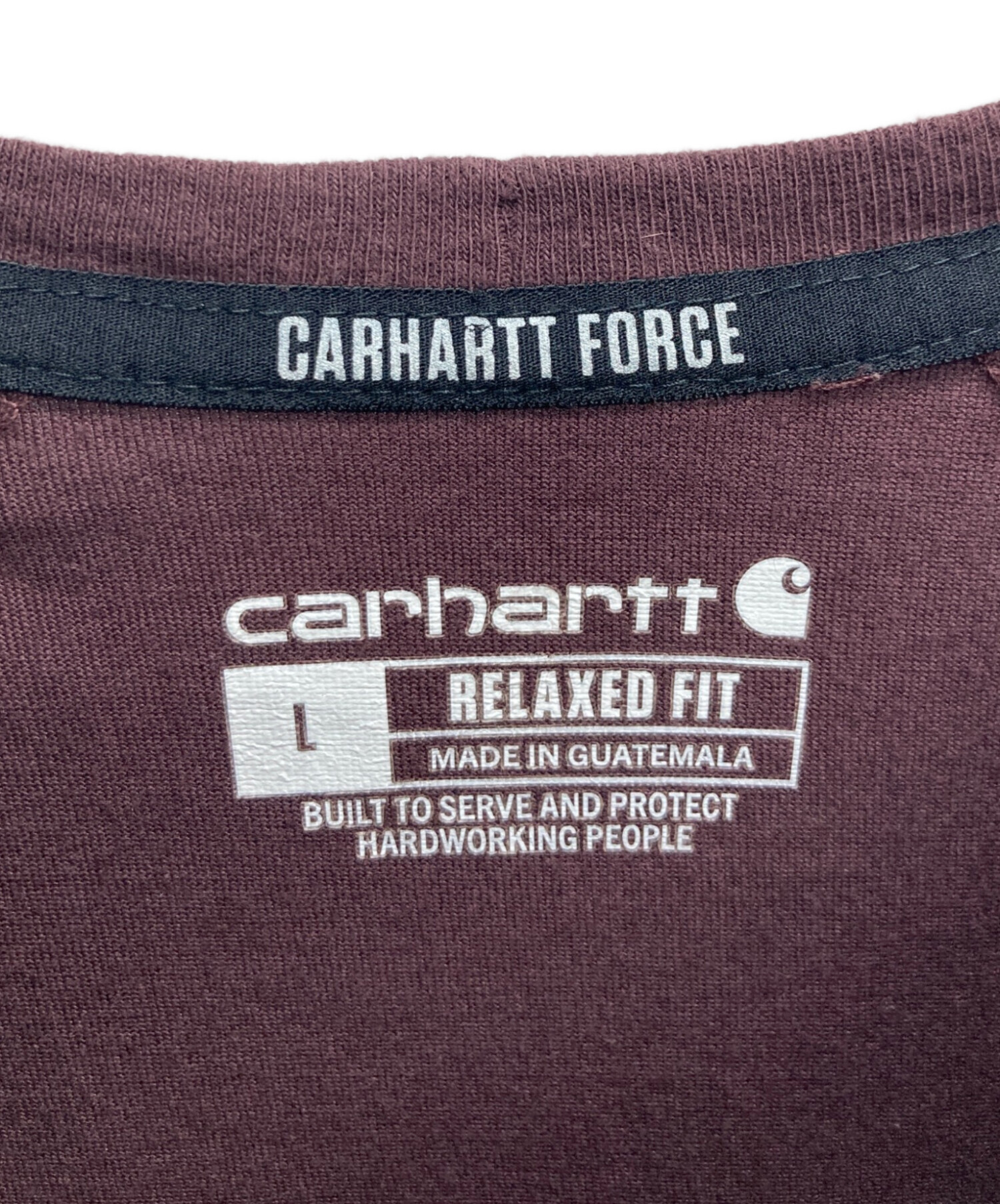• CarHartt(カーハート)CarHartt (カーハート) Tシャツ ブラウン サイズ:Lの古着・服飾アイテム 左袖後ろ ヨゴレ有り
