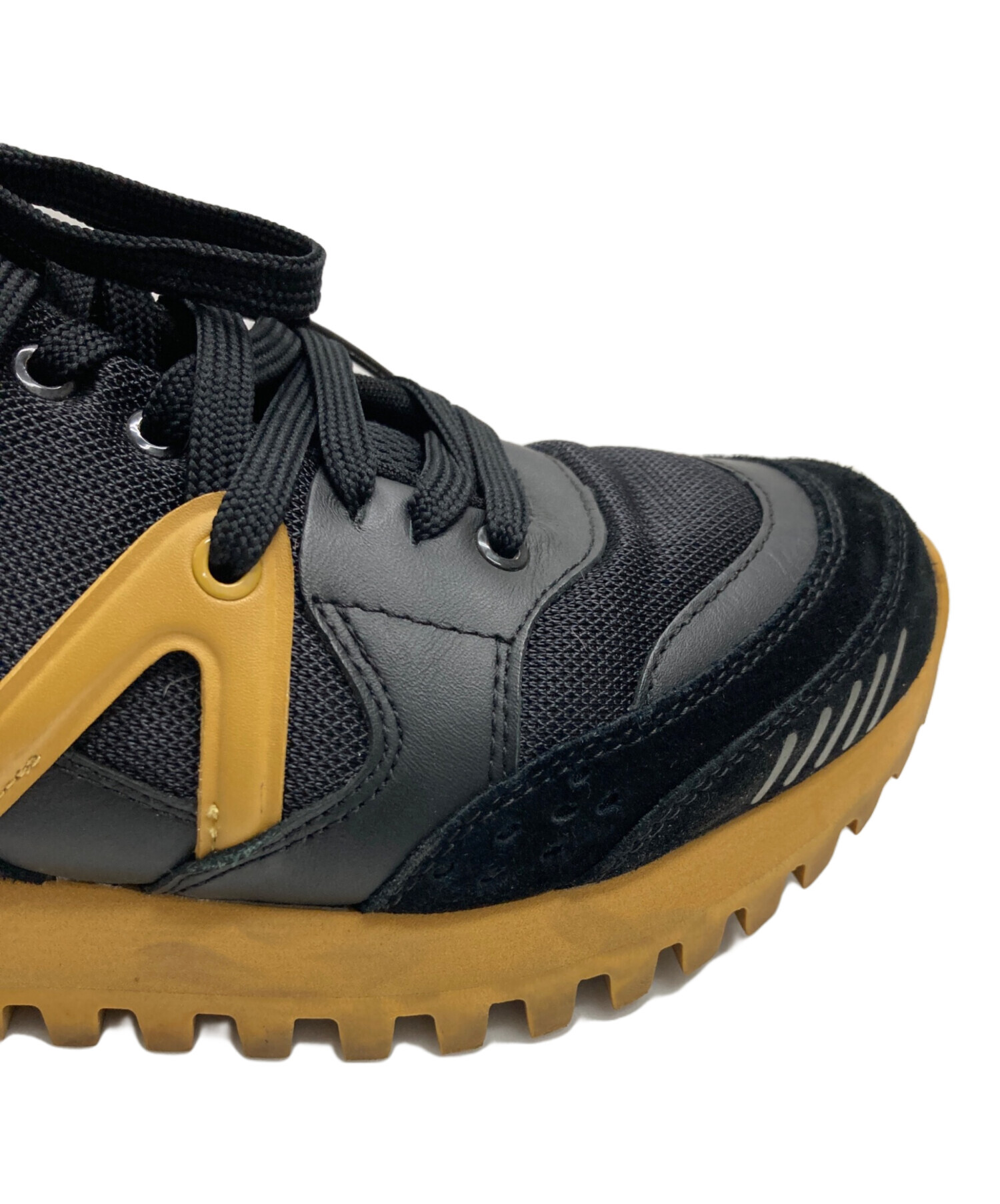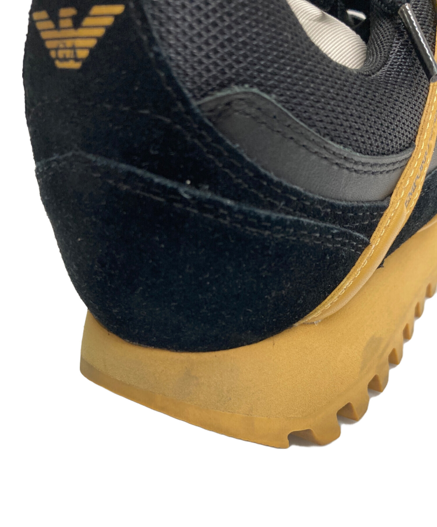 • EMPORIO ARMANI(エンポリオ アルマーニ)EMPORIO ARMANI (エンポリオアルマーニ) ローカットスニーカー ブラック サイズ:42の古着・服飾アイテム 右足ヒール付近 スレ