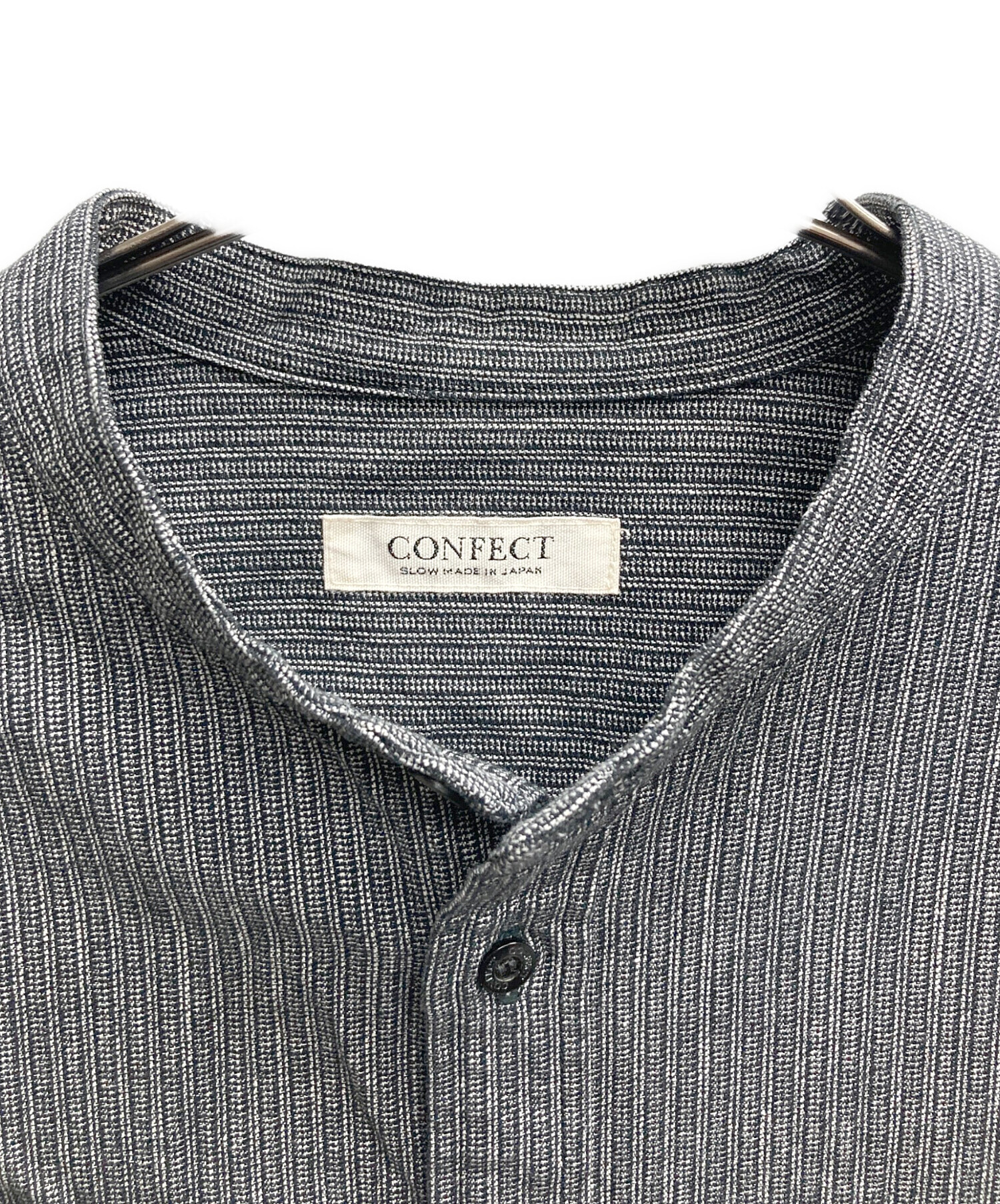 | アイテム名 | 先染めコットン 杢ストライプ バンドカラーシャツ |