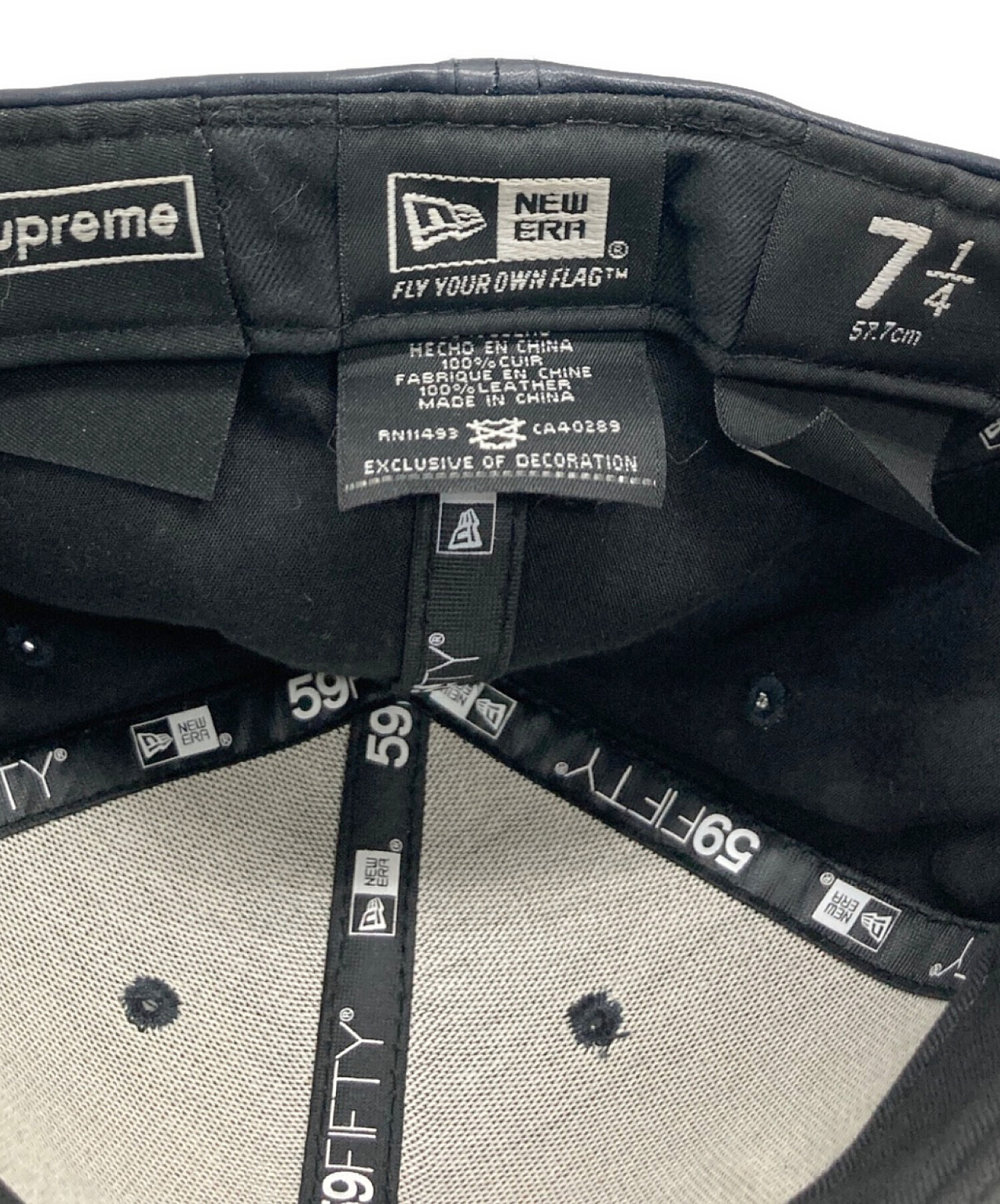 • SUPREME(シュプリーム)SUPREME (シュプリーム) New Era (ニューエラ) 15AW leatherbox logo ネイビー サイズ:7 1/4の古着・服飾アイテム つば内側部分 ヨゴレ有り