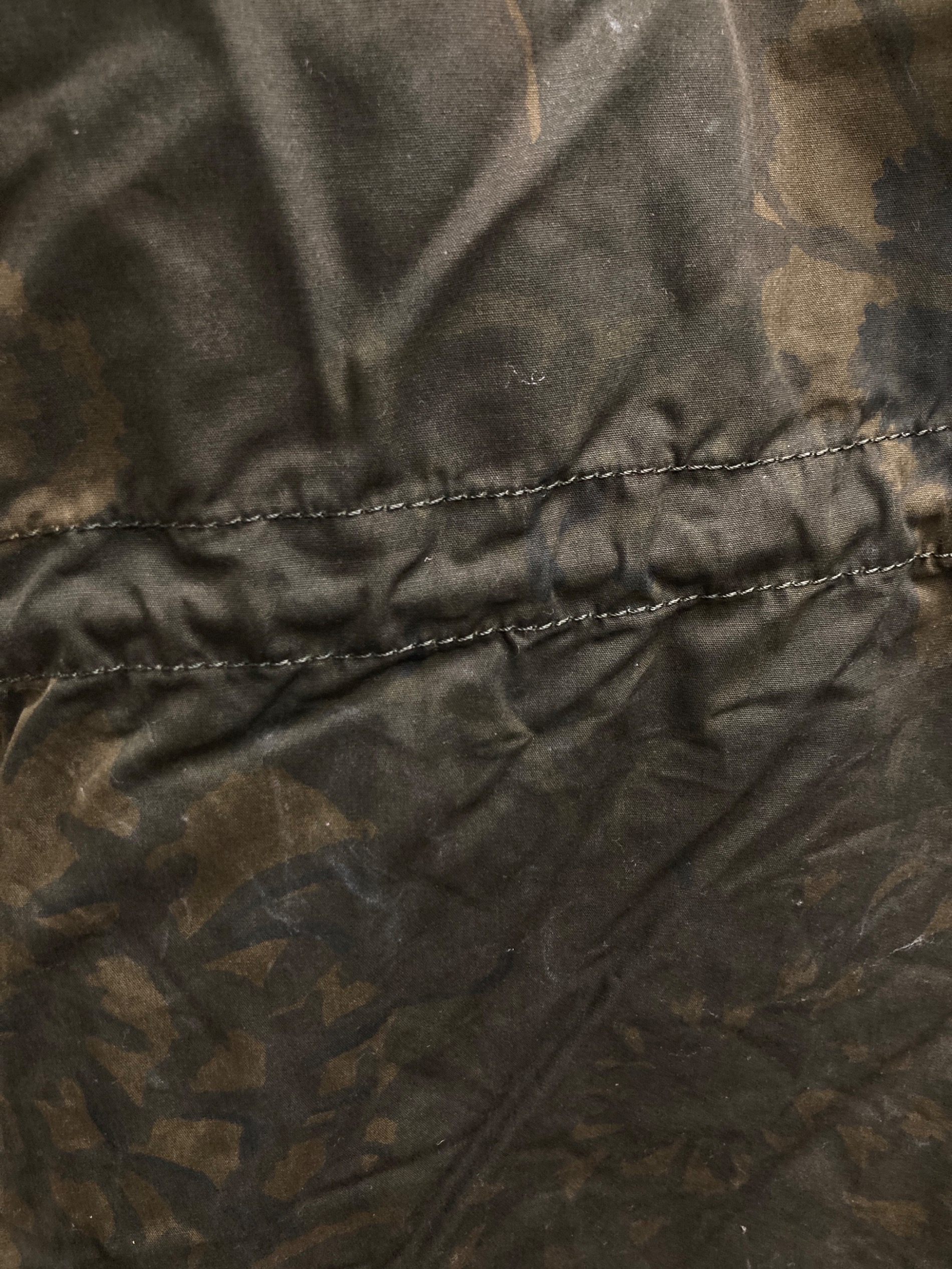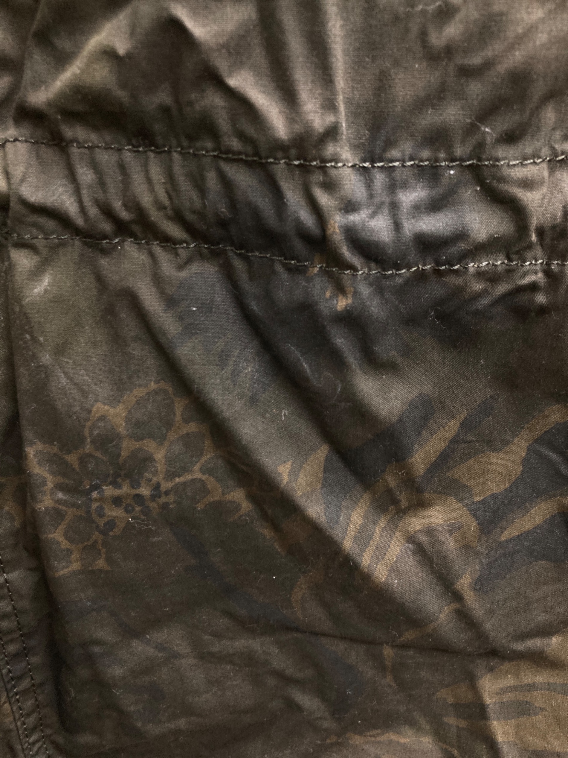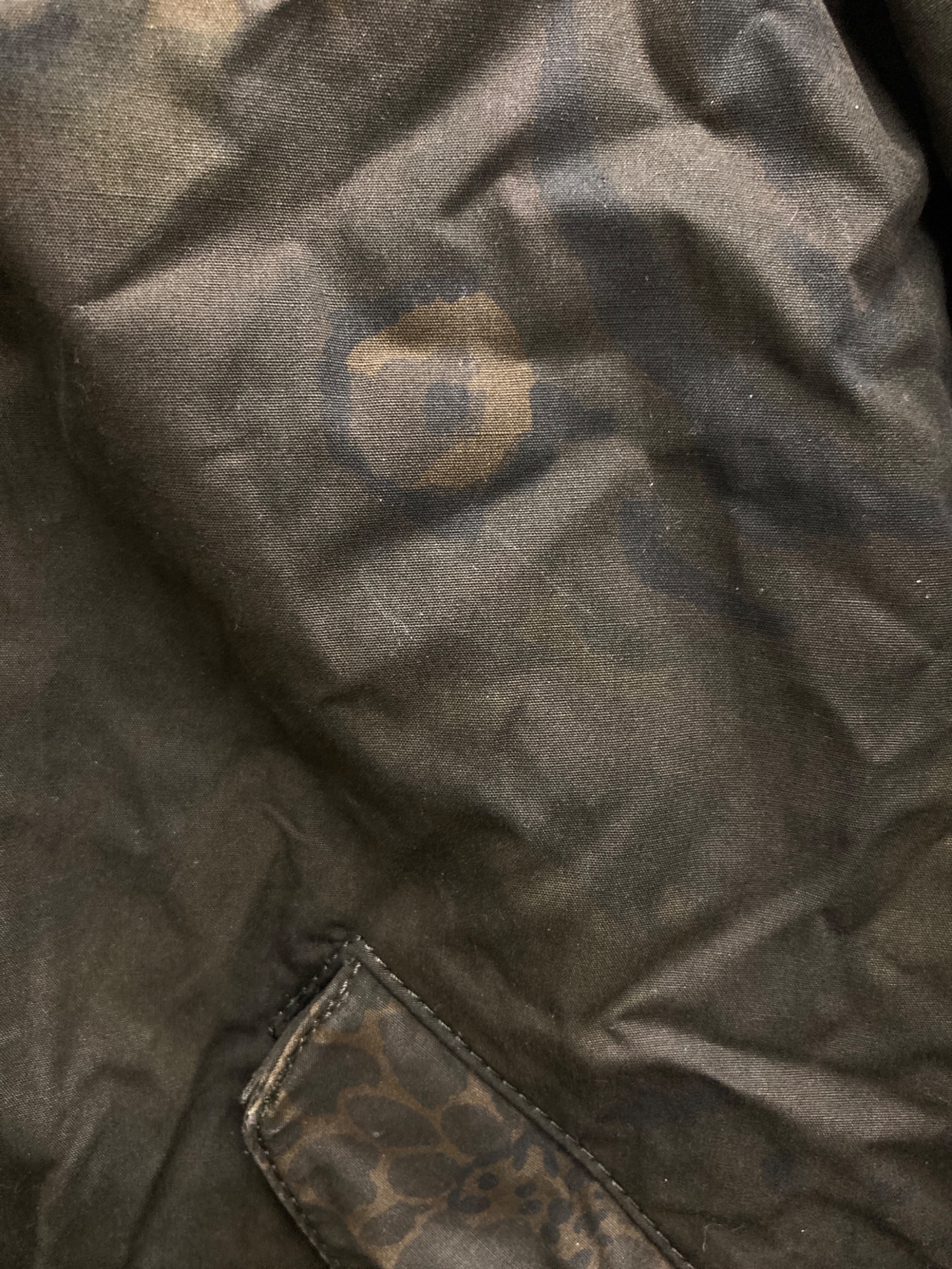 • COACH(コーチ)COACH (コーチ) KAFFE FASSETT (カフェ・ファセット) モッズコート グリーン サイズ:48の古着・服飾アイテム バック面 ヨゴレ有り