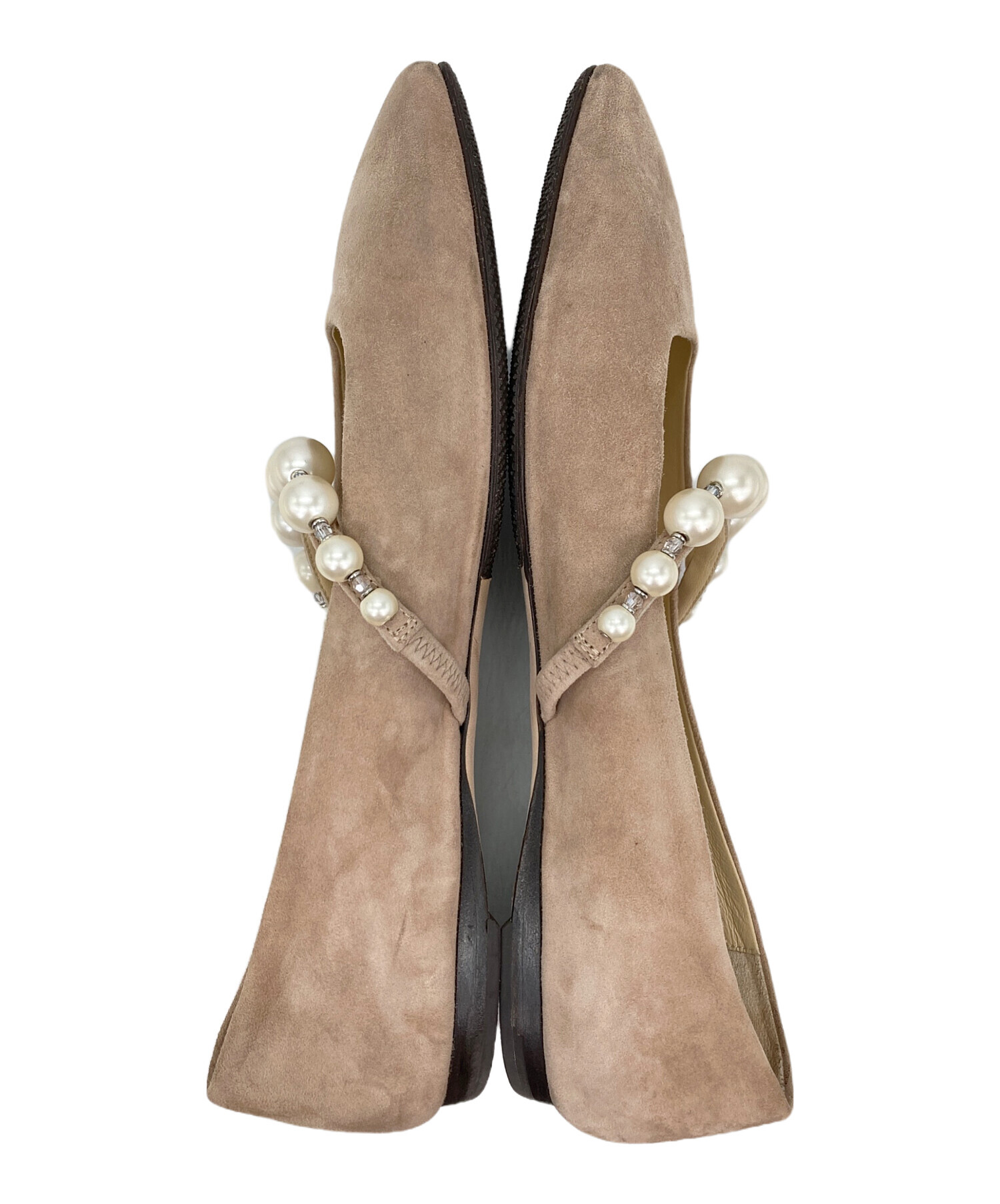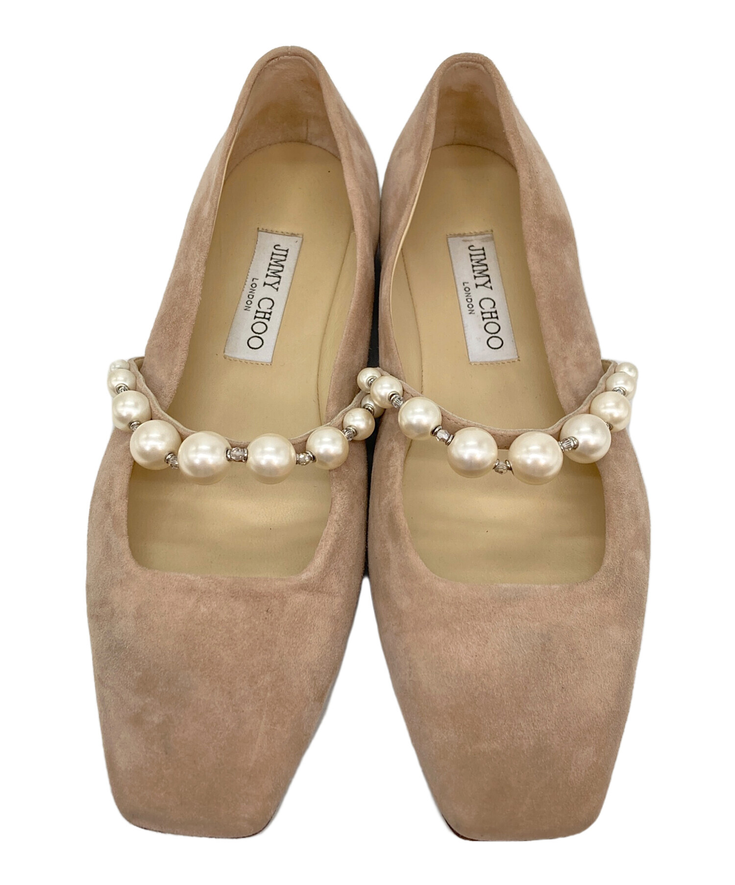• JIMMY CHOO(ジミーチュウ)JIMMY CHOO (ジミーチュウ) スウェードフラットシューズ ベージュ サイズ:38 1/2の古着・服飾アイテム 汚れ・毛羽立ち・スレ有