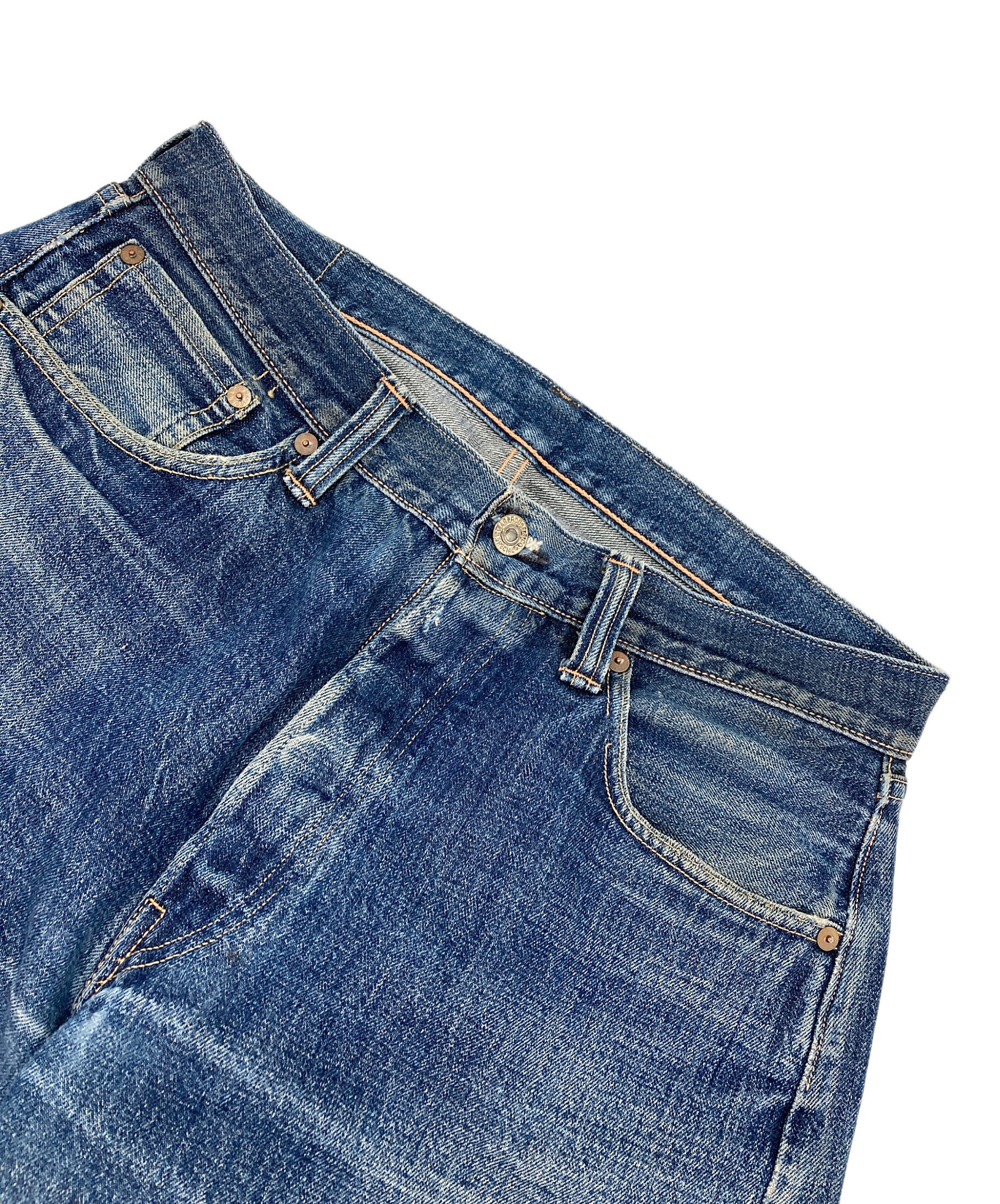 | 状態 | こちらの商品は中古品の為、使用に伴います細かなキズ、汚れがございます。店頭にて展示販売を行っている為、記載に無い細かなキズ、汚れが見受けられる場合がございます。 リペア跡がございます。(写真6,7参照) パッチ薄れがございます。(写真8参照) 裾にスレがございます。(写真9,10参照) |