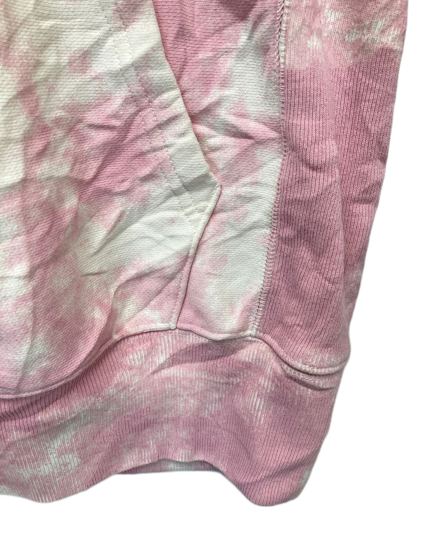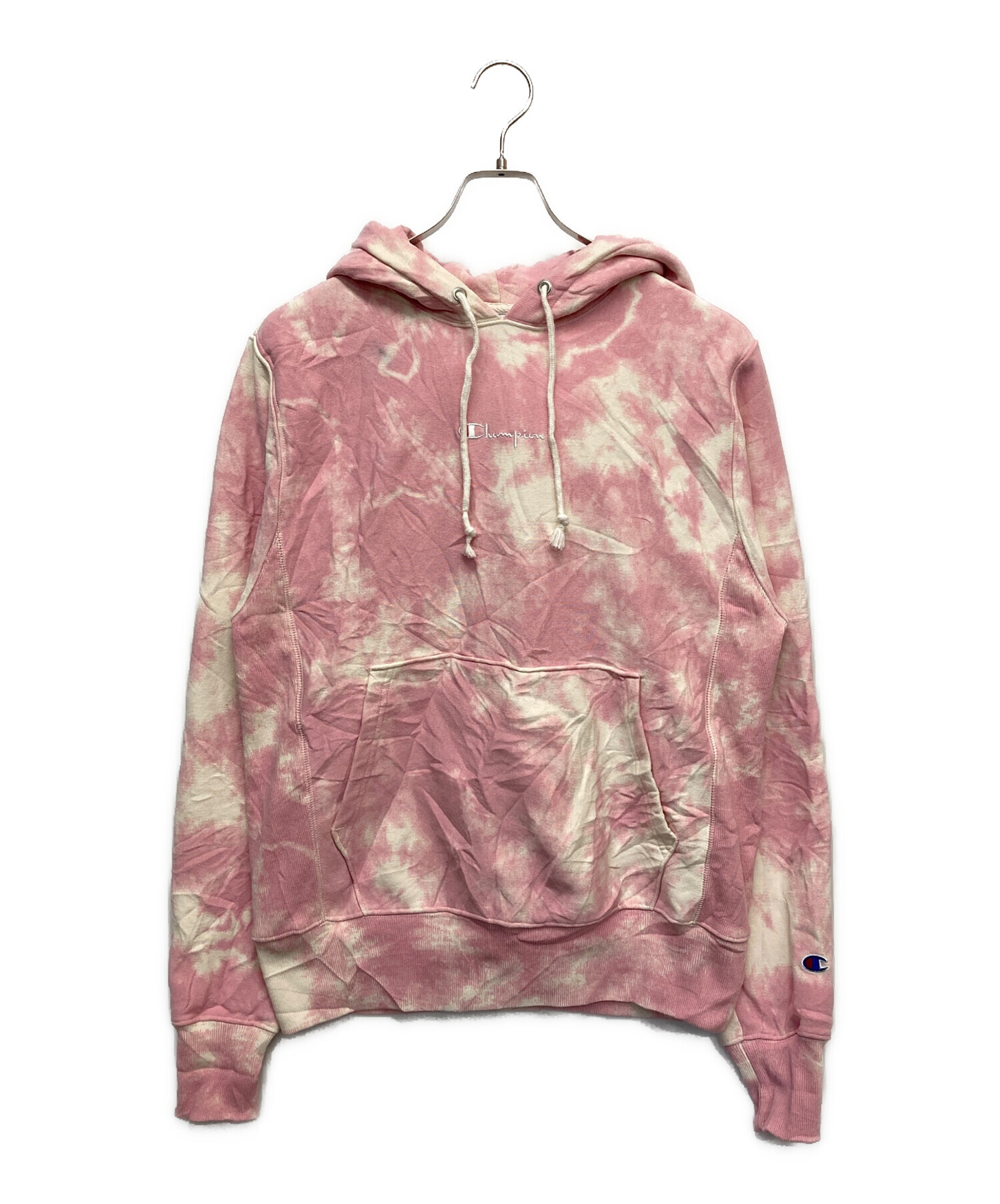• Champion(チャンピオン)Champion (チャンピオン) ブリーチプルオーバーパーカー ピンク サイズ:Sの古着・服飾アイテム 正面汚れ有