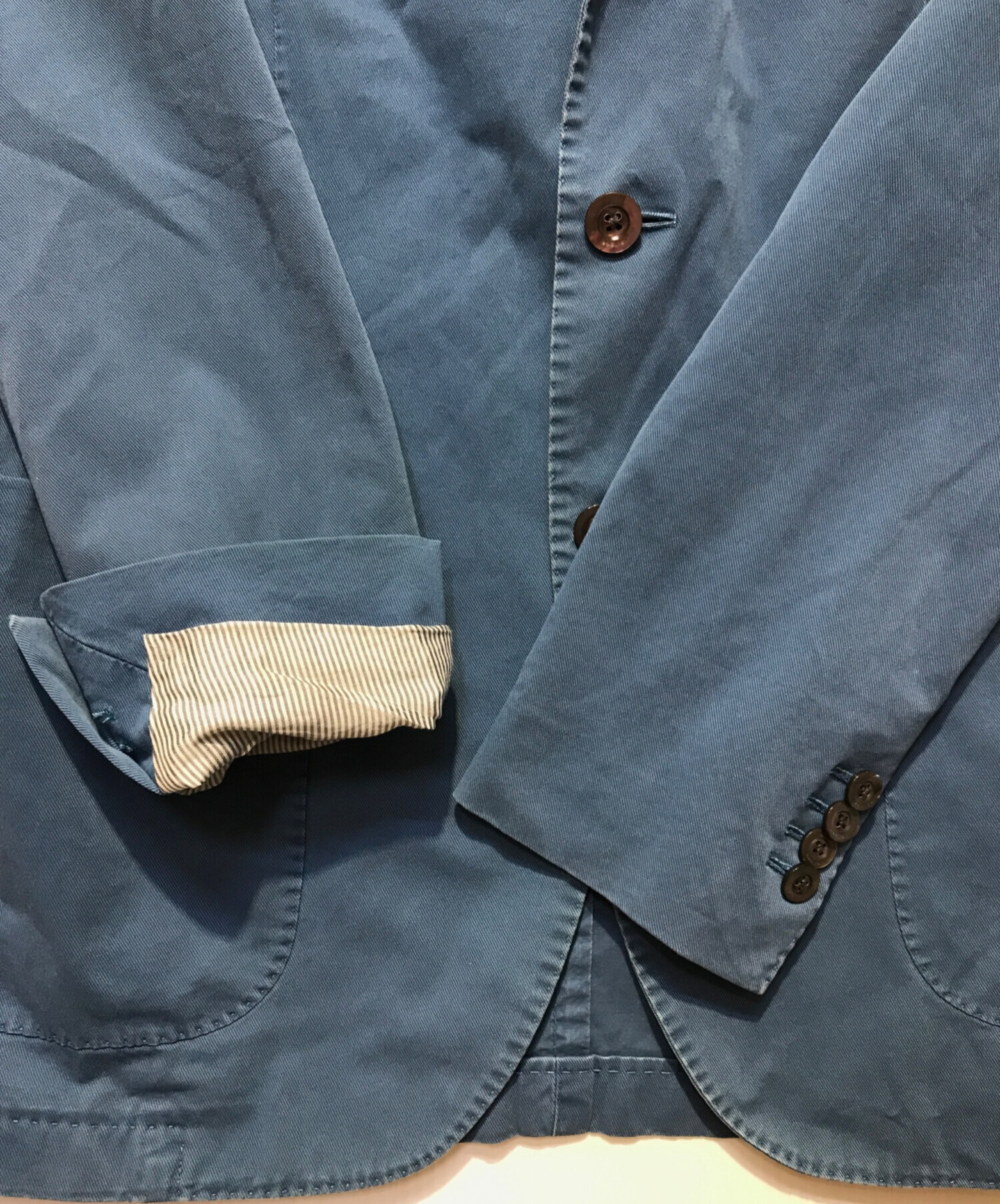 目立つシミや汚れ、におい等がある場合は商品画像や説明文にて極力表記させていただいておりますが、中古品という商品の特性上、全ての瑕疵や不備、洋服直し箇所を撮影・記載をすることは難しくなっております。また、ほとんどのアイテムは店頭と併売しておりますため、出品掲載時からコンディションが変動している場合もございます。あらかじめご了承くださいませ。