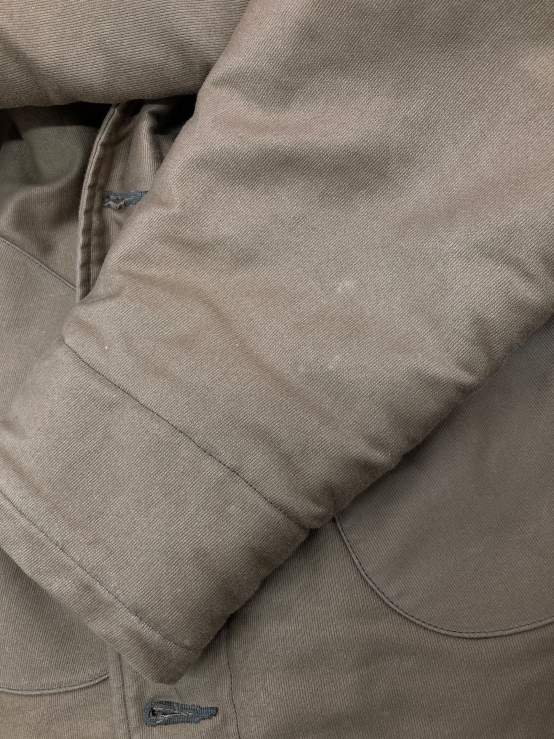 | 素材 | 表地: 綿 100% 身頃裏地: パイル: ウール 50% アルパカ 50% グラウンド: 綿 100% |