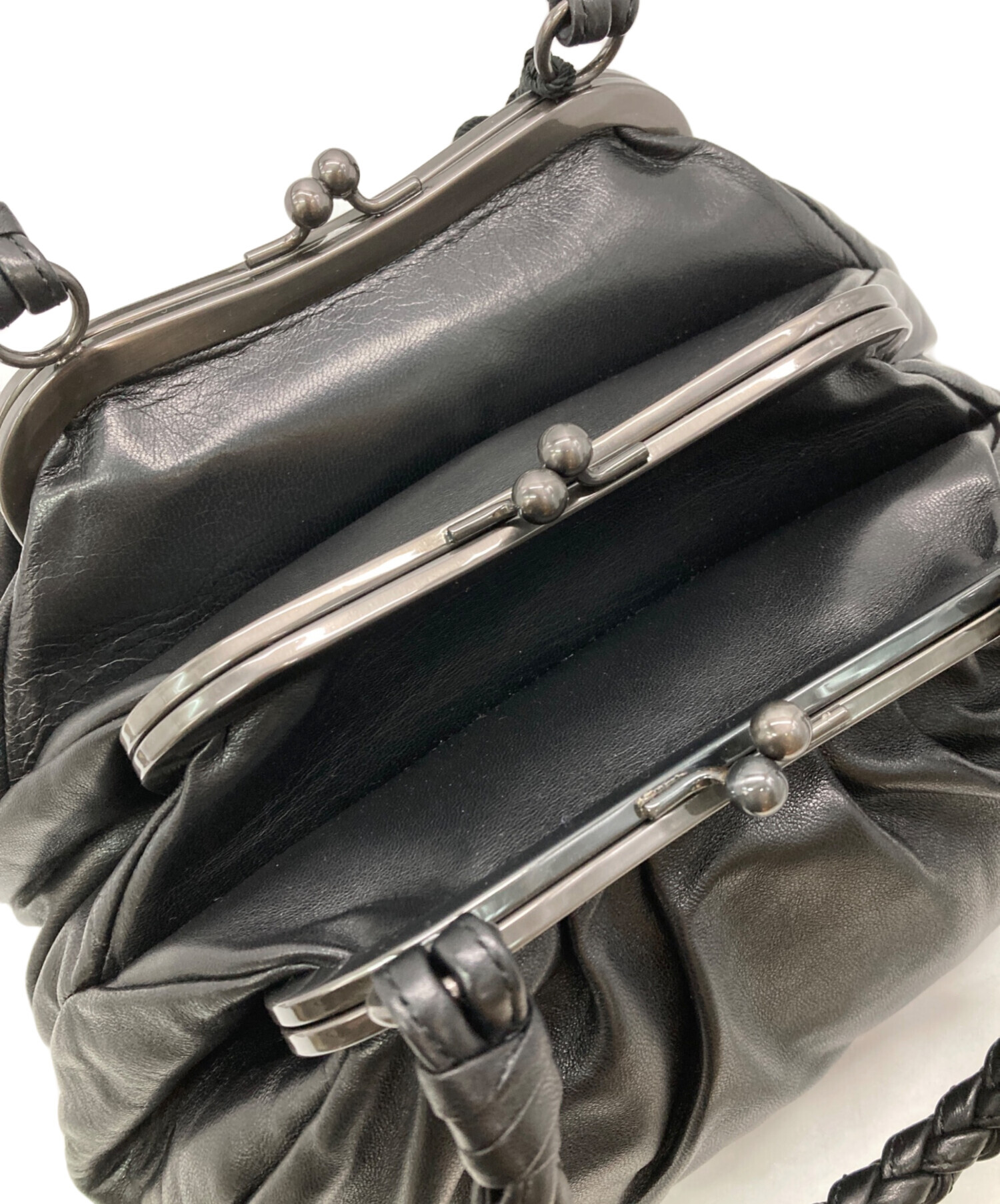 がま口レザーハンドバッグ