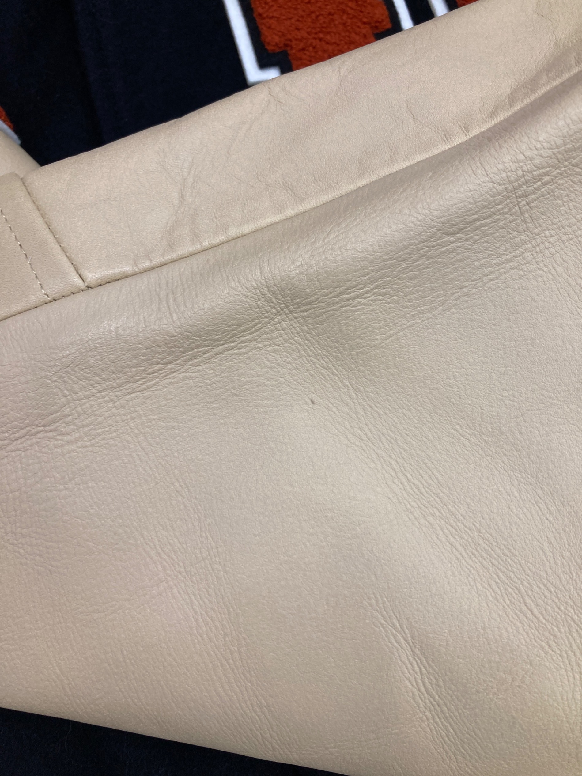 | 素材 | 表地:羊毛90% ナイロン10% 裏地:ポリエステル100% 袖:牛革 詰め物:ポリエステル100% リブ部分:アクリル70% 毛30% |