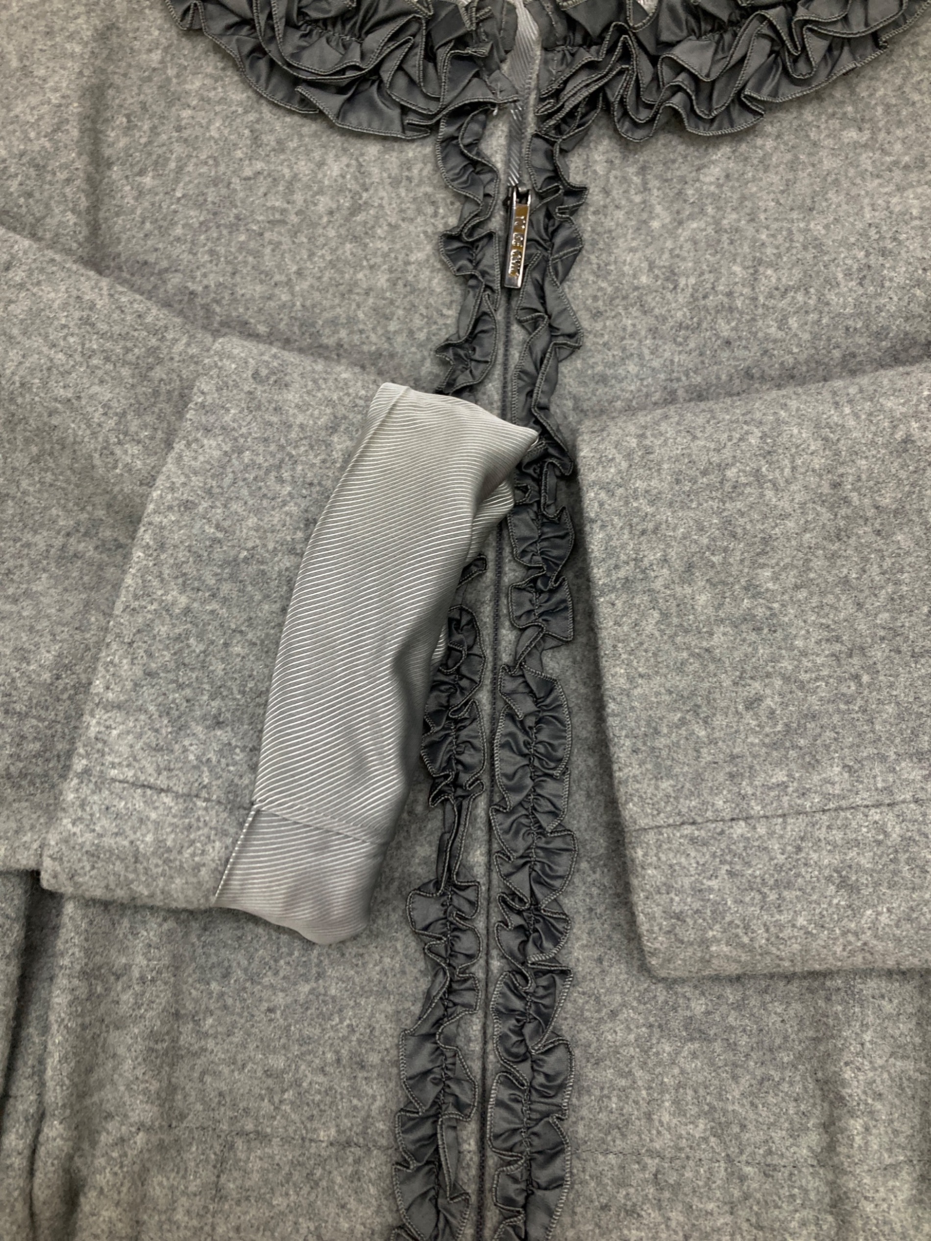 | 素材 | 本体:毛100% 別布フリル:ポリエステル100% 裏地:キュプラ |